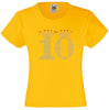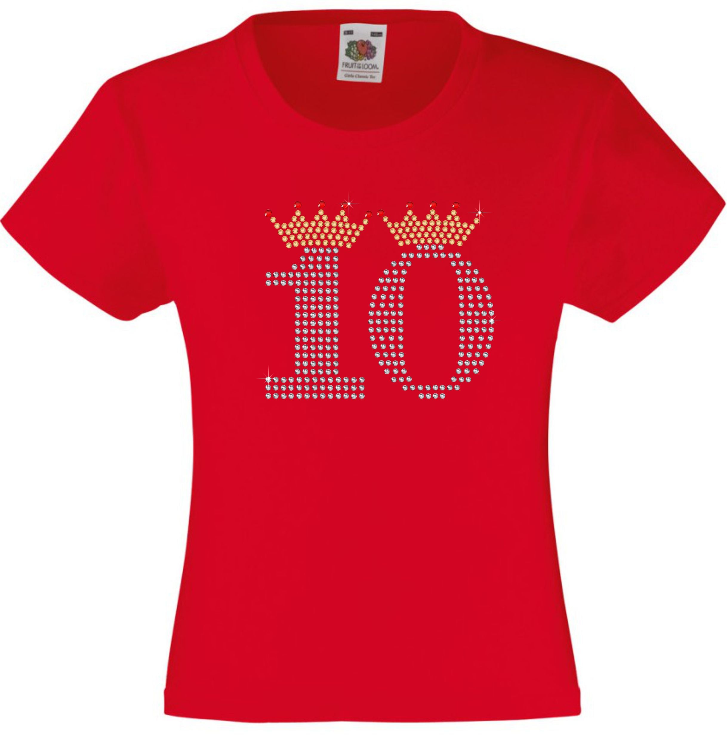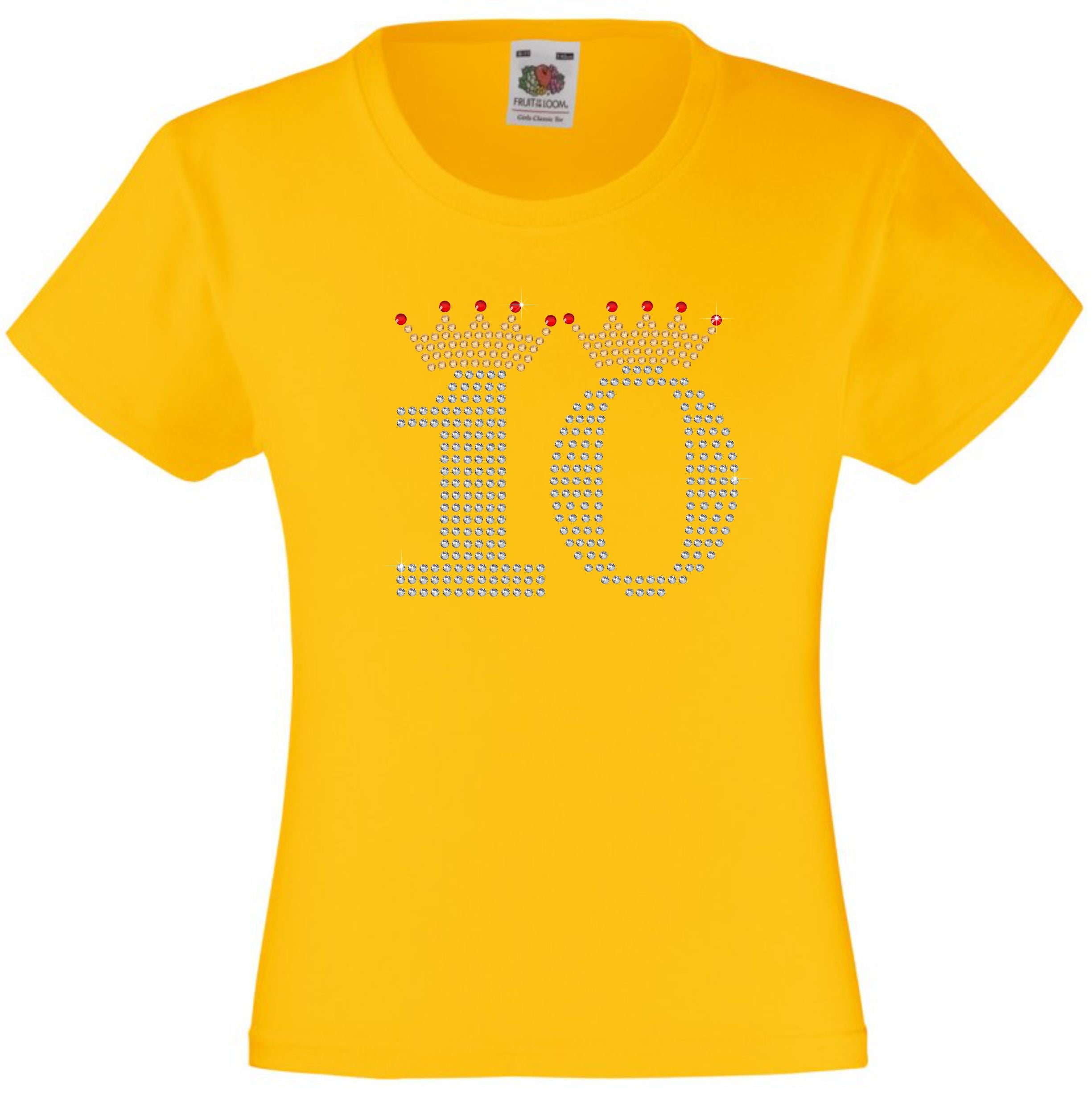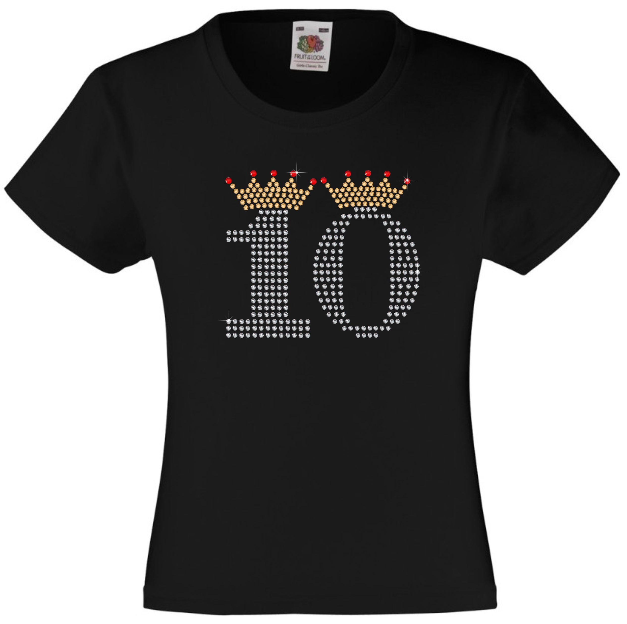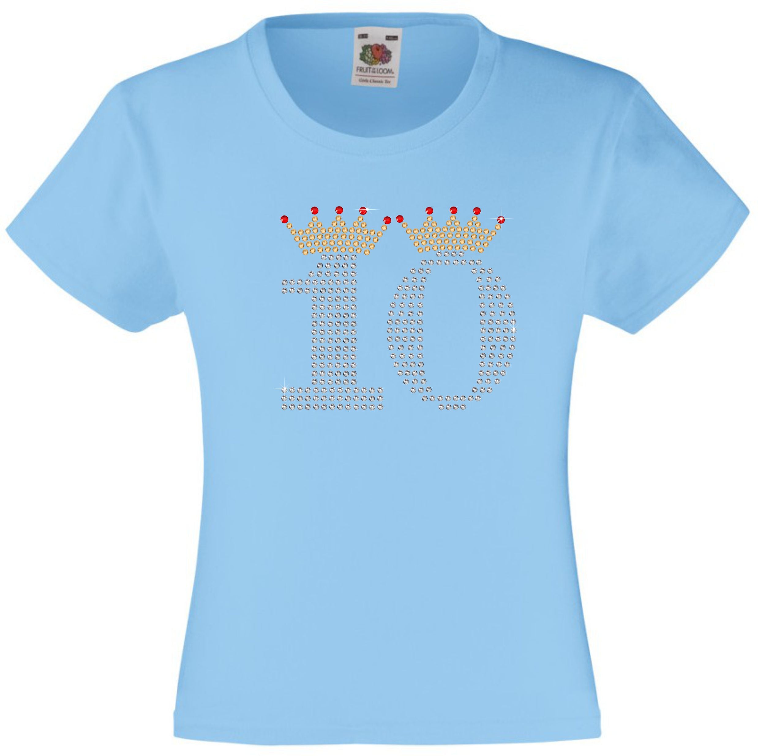 NUMBER 10 IN CRYSTAL COLOUR WITH TIARA GIRLS T SHIRT, RHINESTONE EMBELLISHED BIRTHDAY T SHIRT, ELEGANT GIFT FOR THEIR BIG DAY
