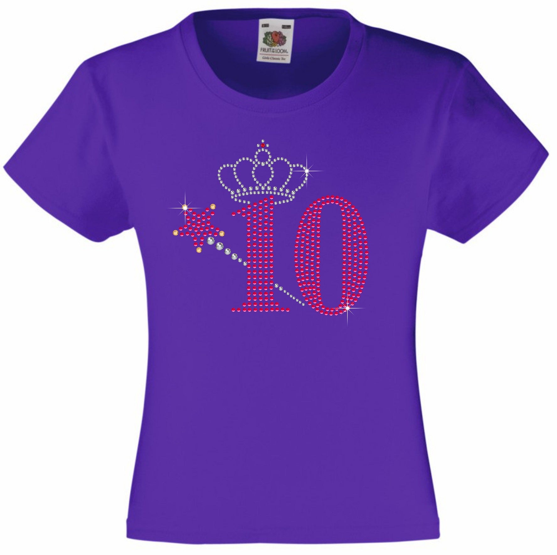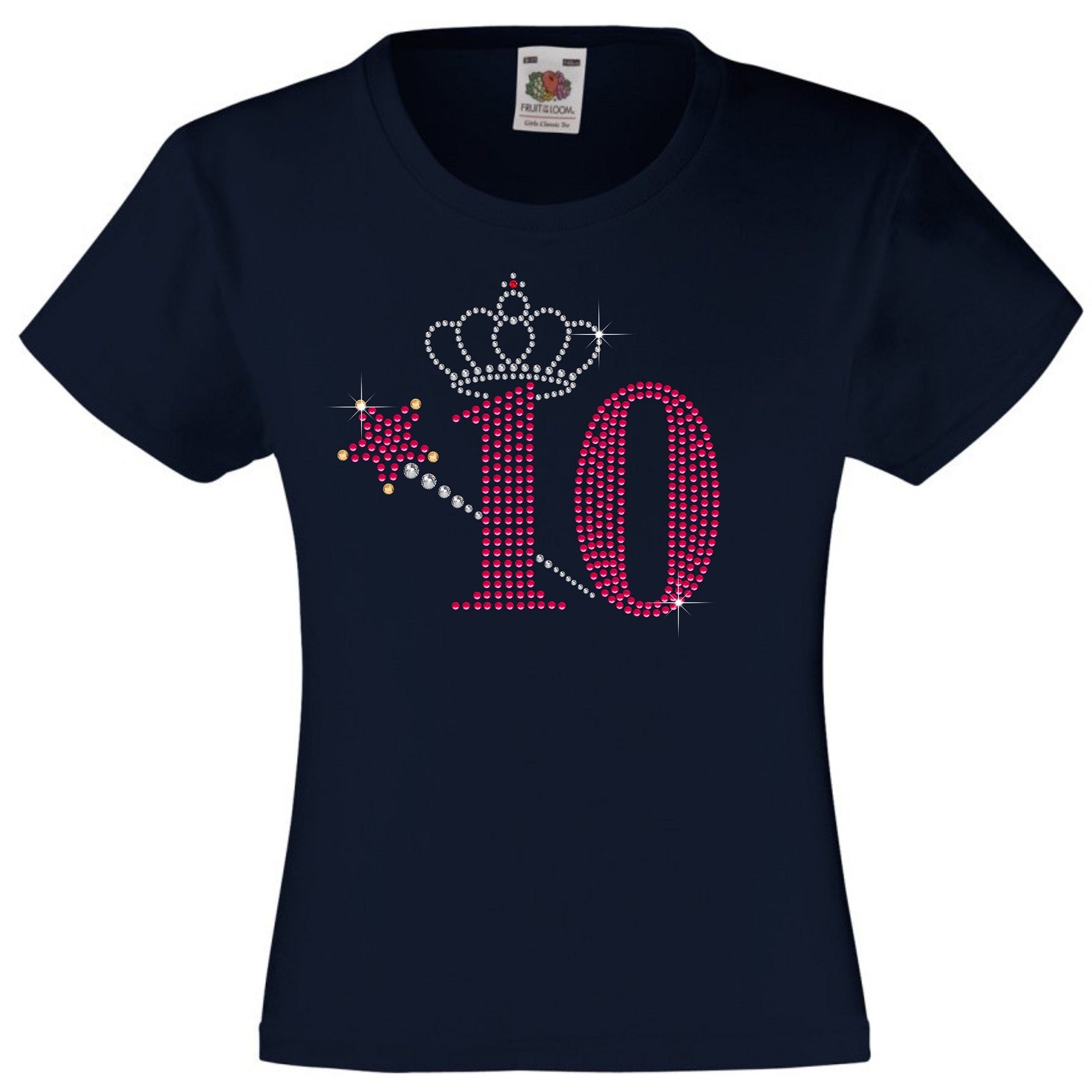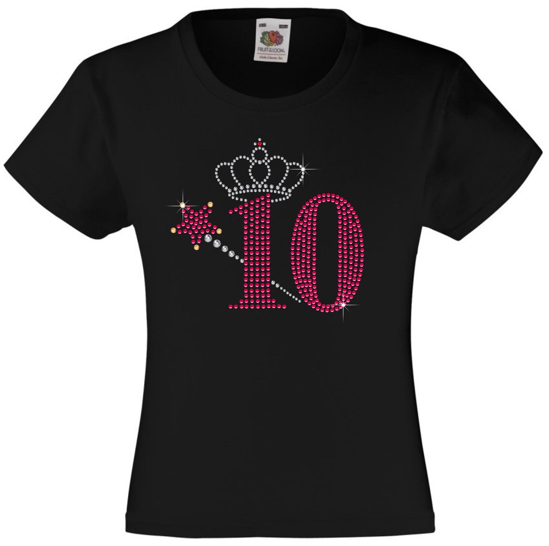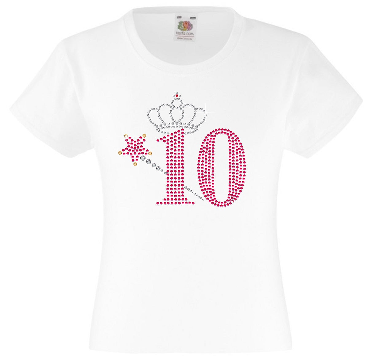 NUMBER 10 WITH CROWN & WAND GIRLS T SHIRT, RHINESTONE EMBELLISHED BIRTHDAY T SHIRT, ELEGANT GIFT FOR THEIR BIG DAY