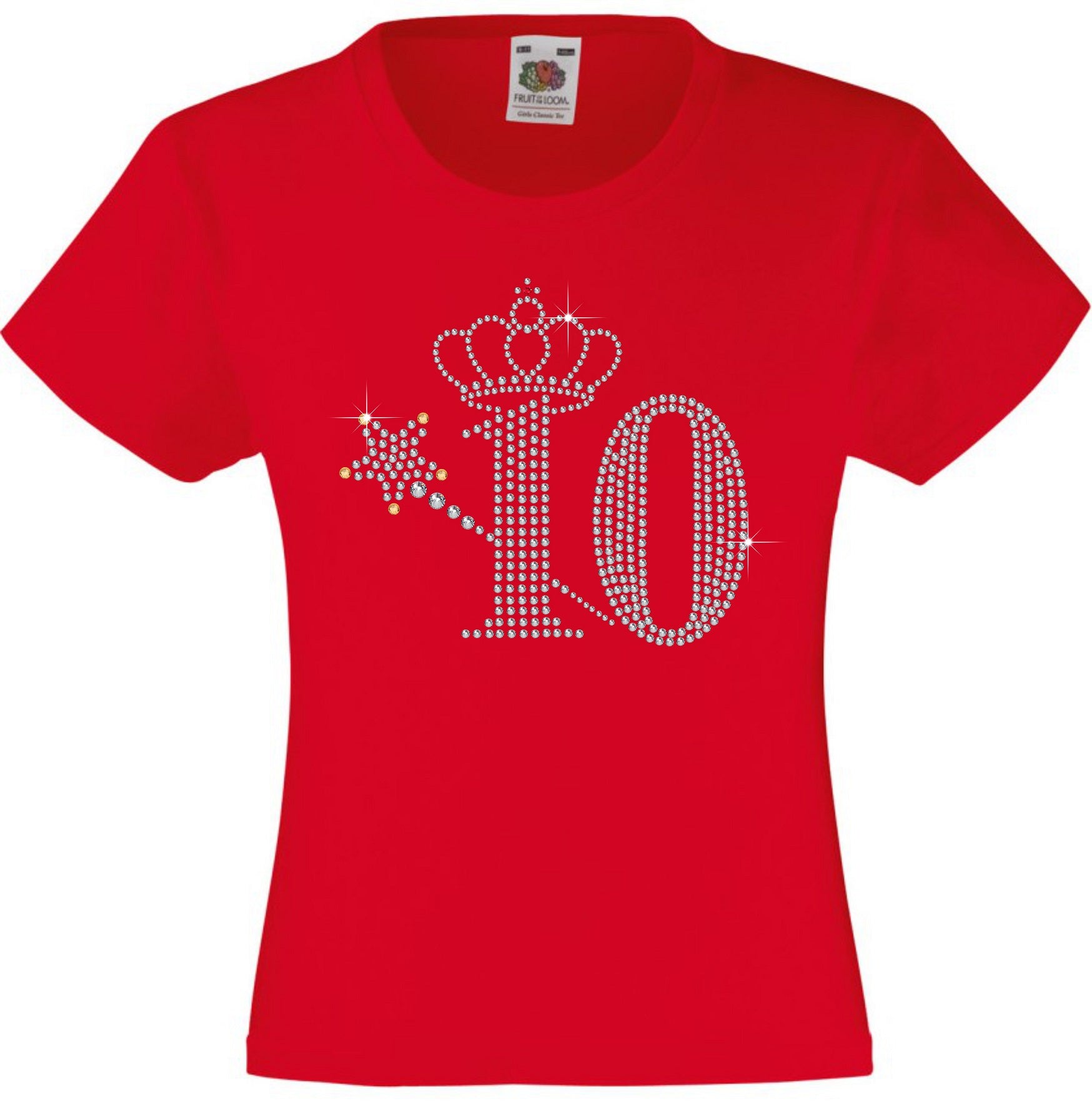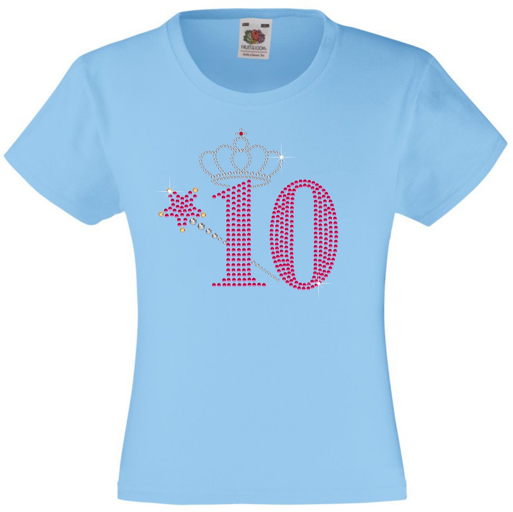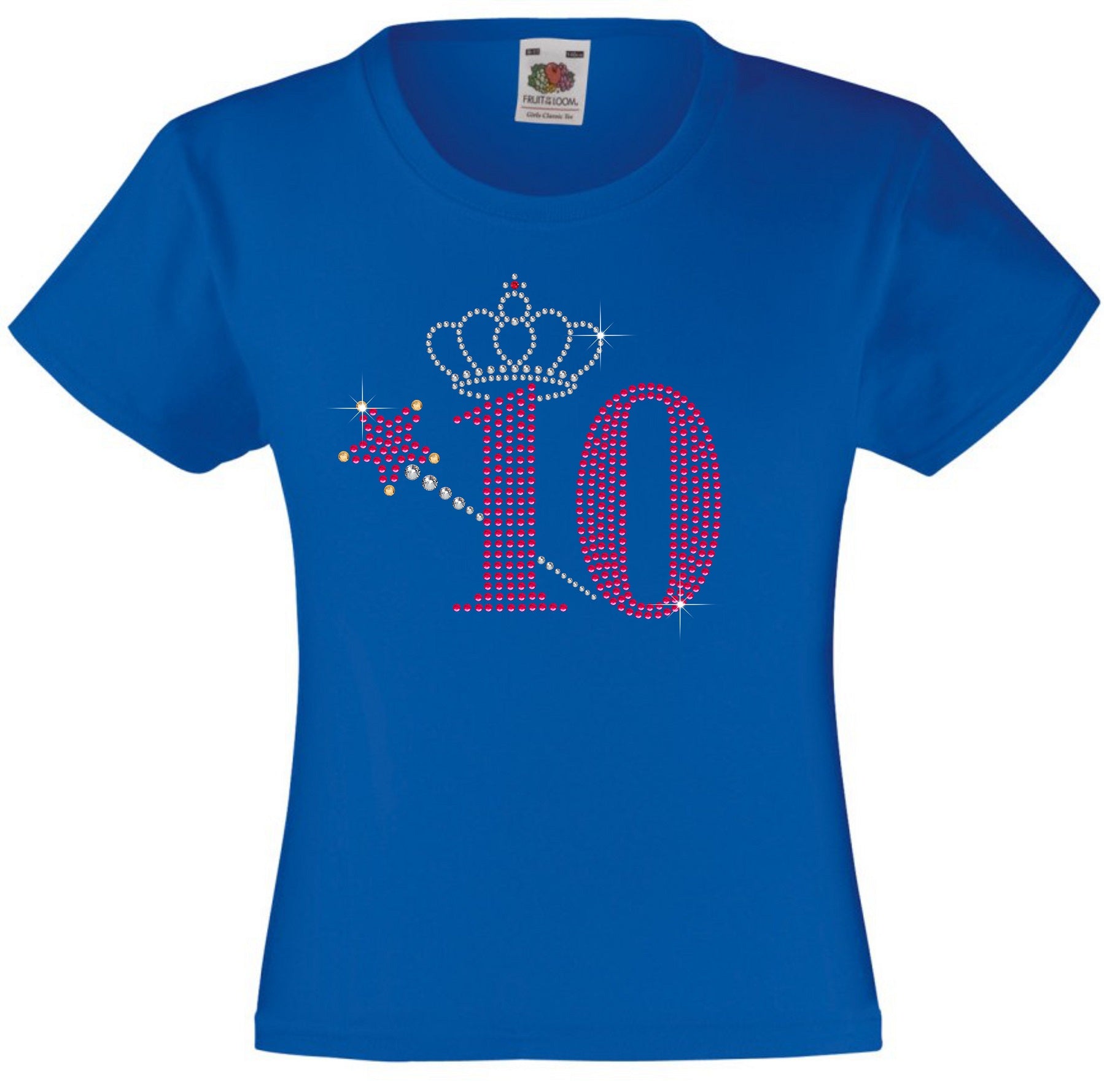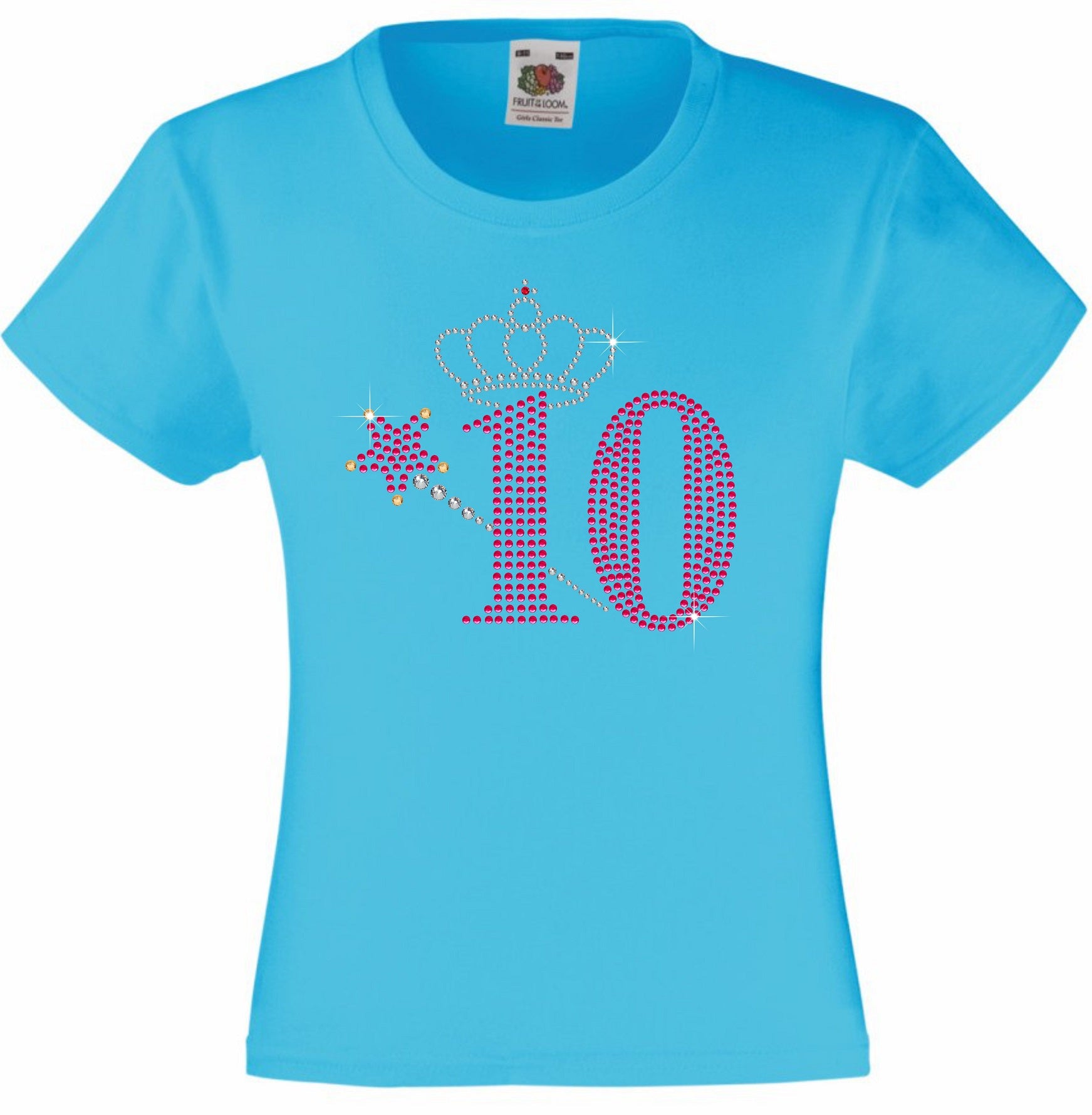 NUMBER 10 WITH CROWN & WAND GIRLS T SHIRT, RHINESTONE EMBELLISHED BIRTHDAY T SHIRT, ELEGANT GIFT FOR THEIR BIG DAY