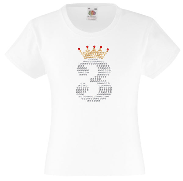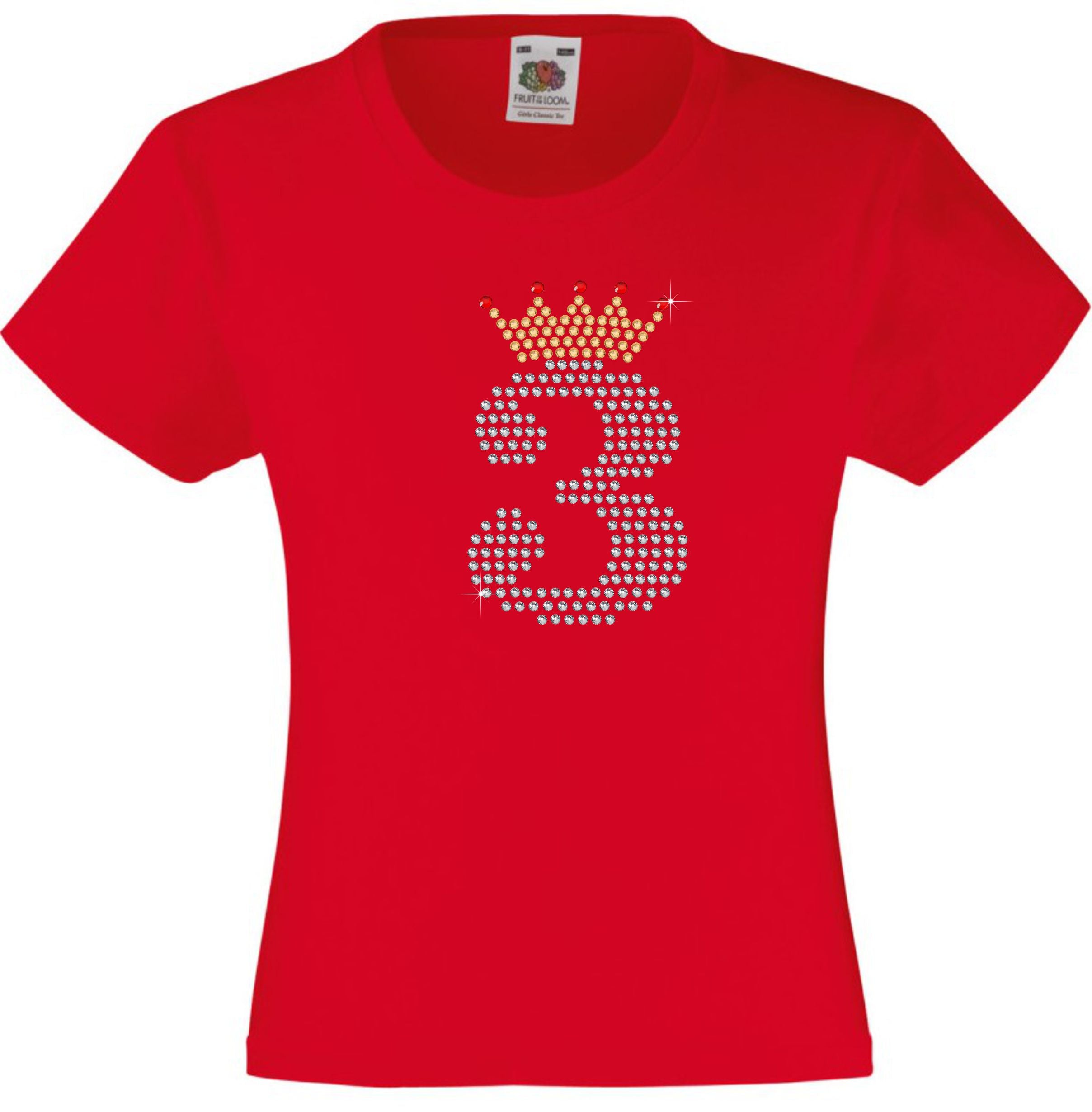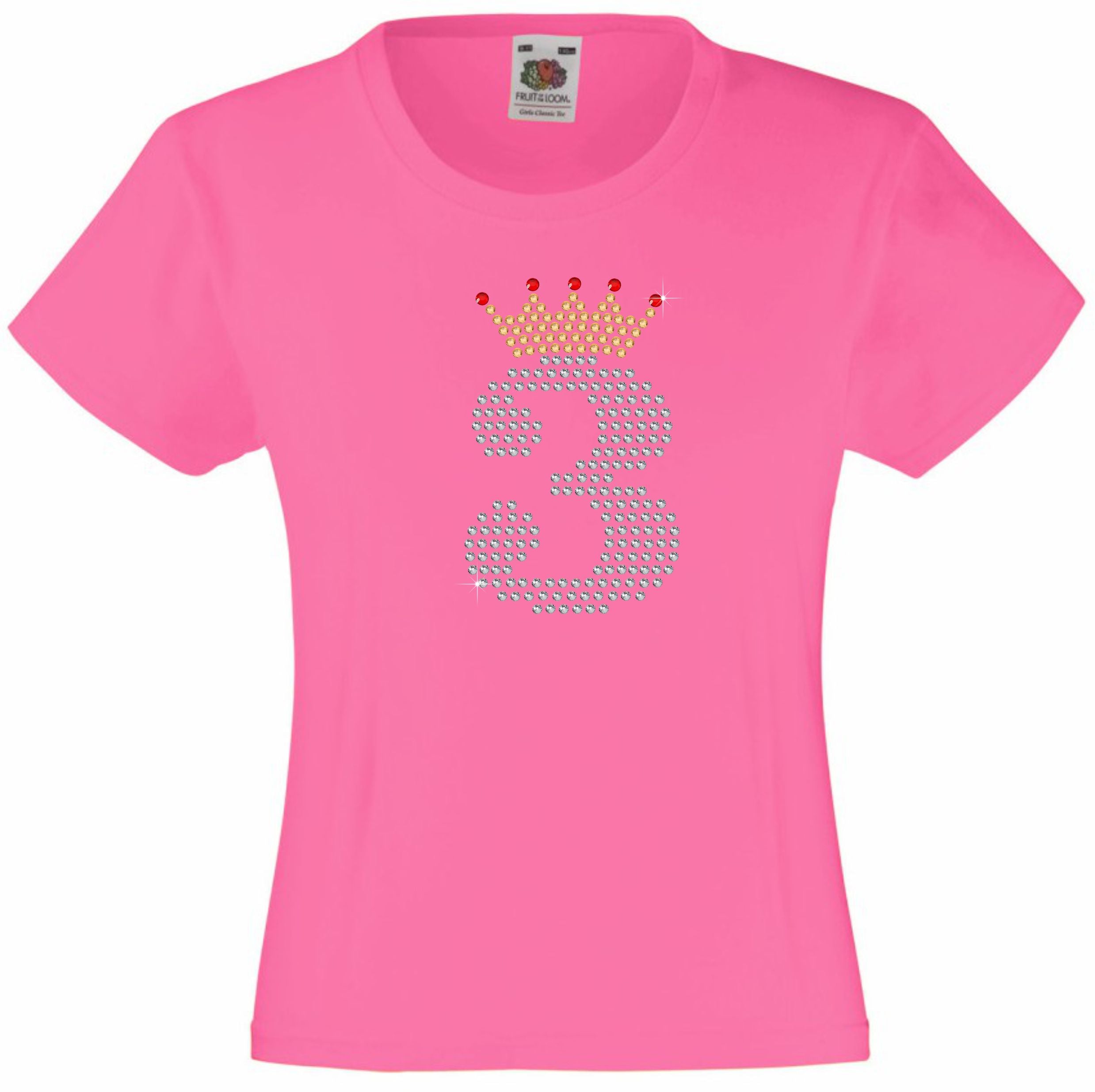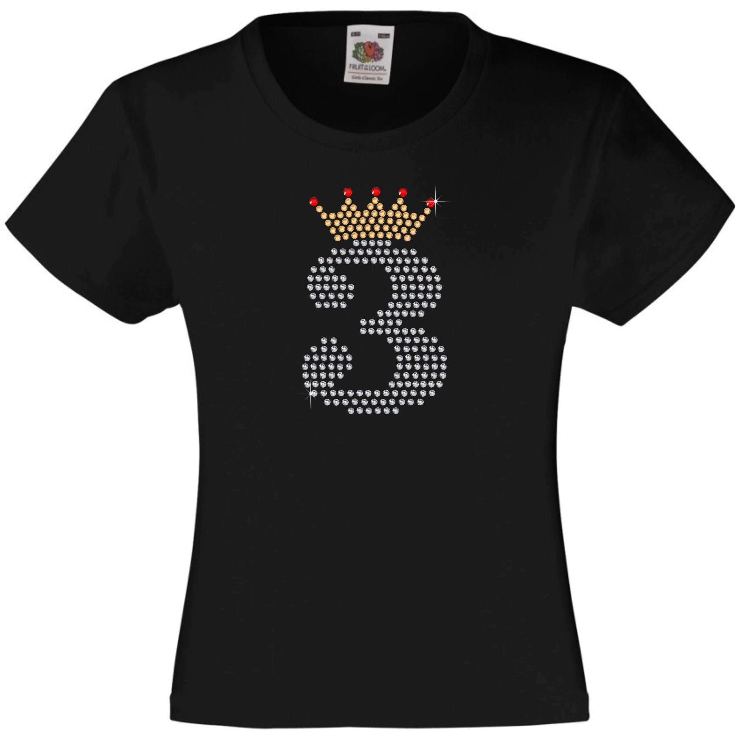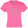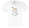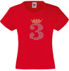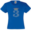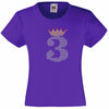 NUMBER 3 IN CRYSTAL COLOUR WITH TIARA GIRLS T SHIRT, RHINESTONE EMBELLISHED BIRTHDAY T SHIRT, ELEGANT GIFT FOR THEIR BIG DAY