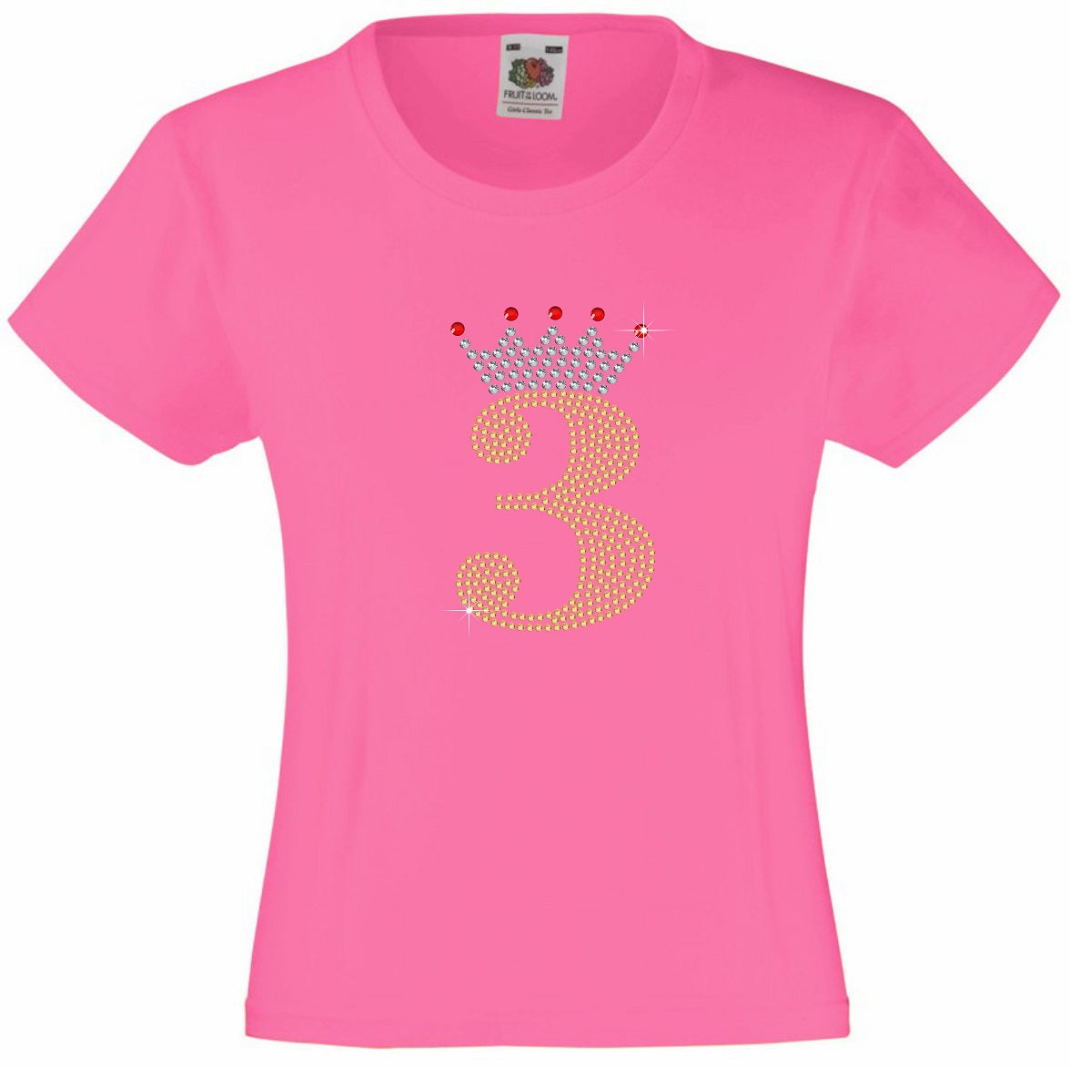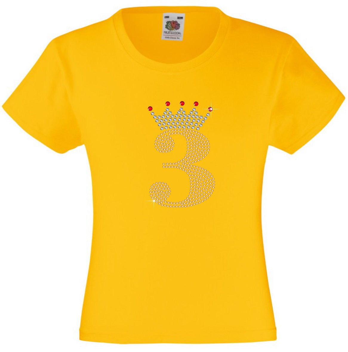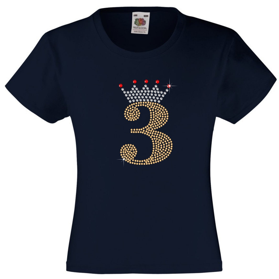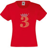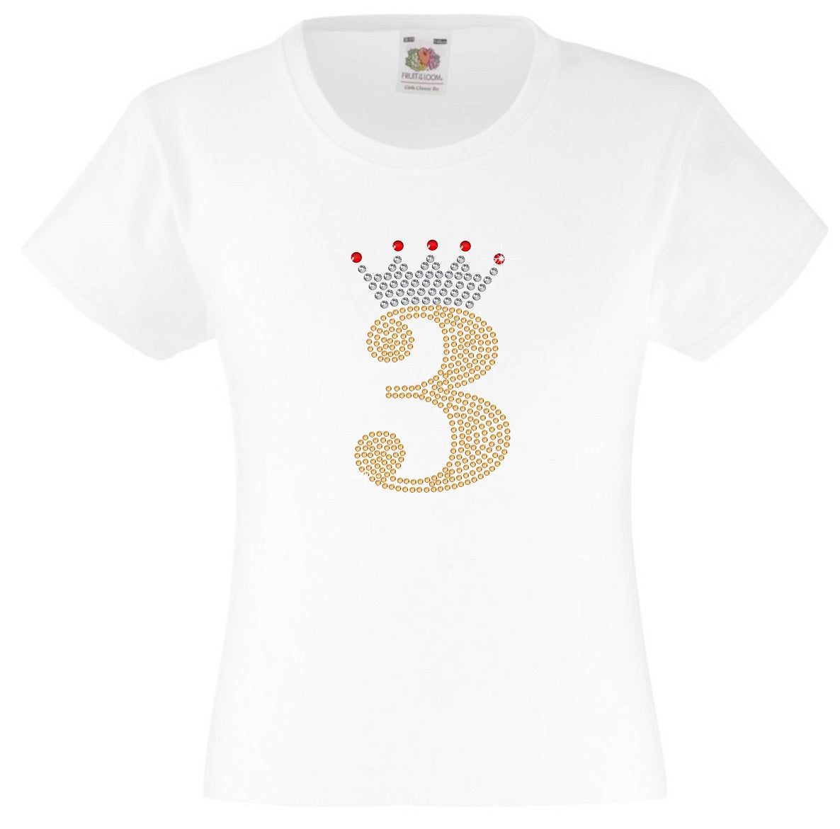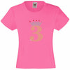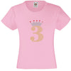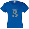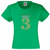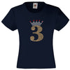 NUMBER 3 IN GOLD COLOUR WITH TIARA GIRLS T SHIRT, RHINESTONE EMBELLISHED BIRTHDAY T SHIRT, ELEGANT GIFT FOR THEIR BIG DAY