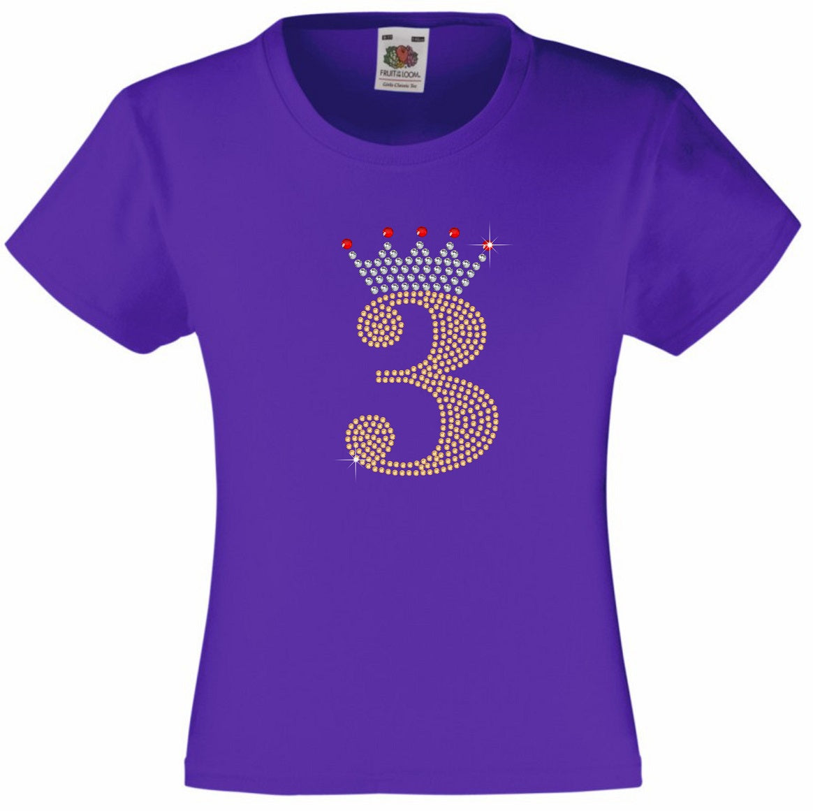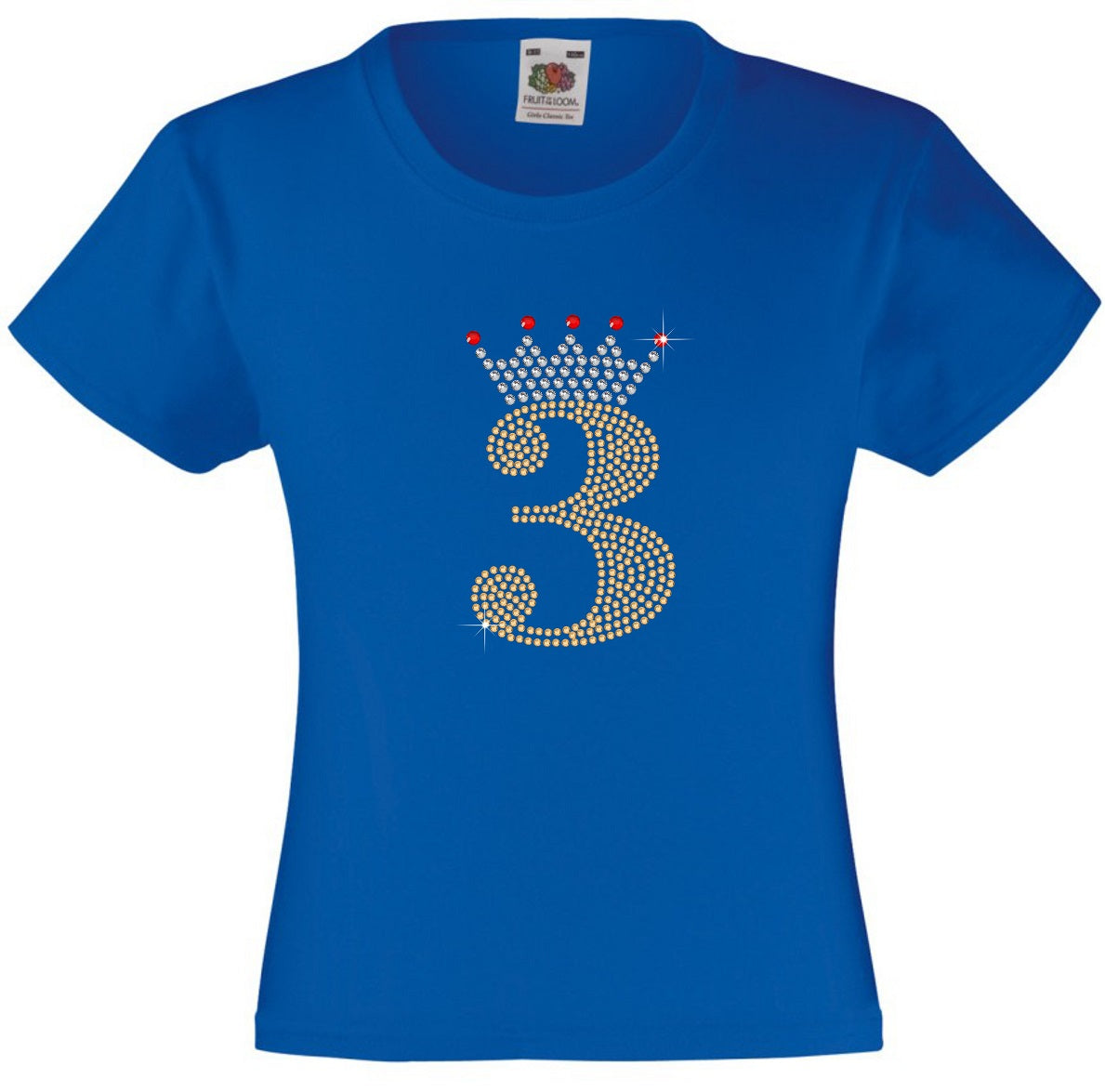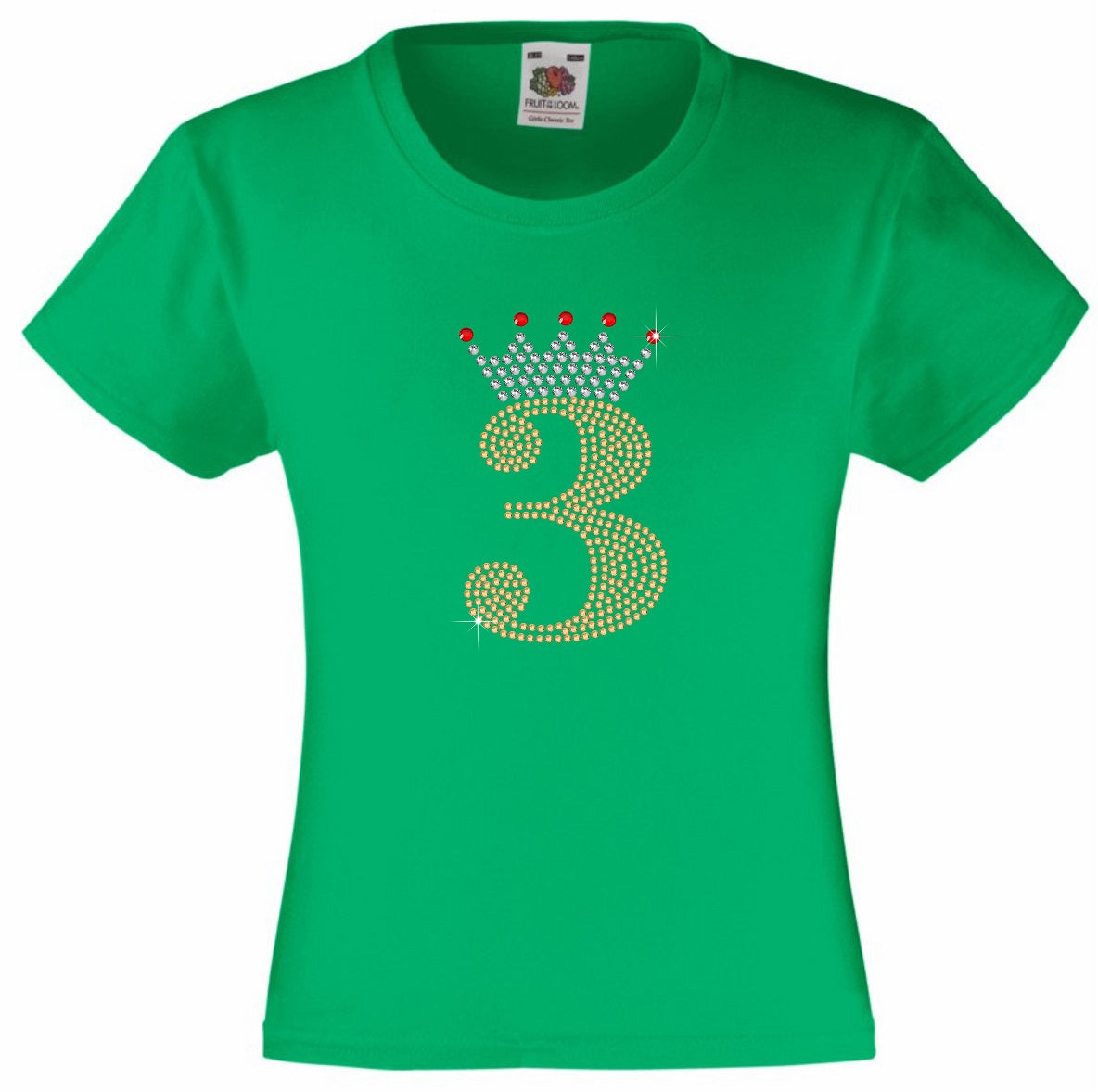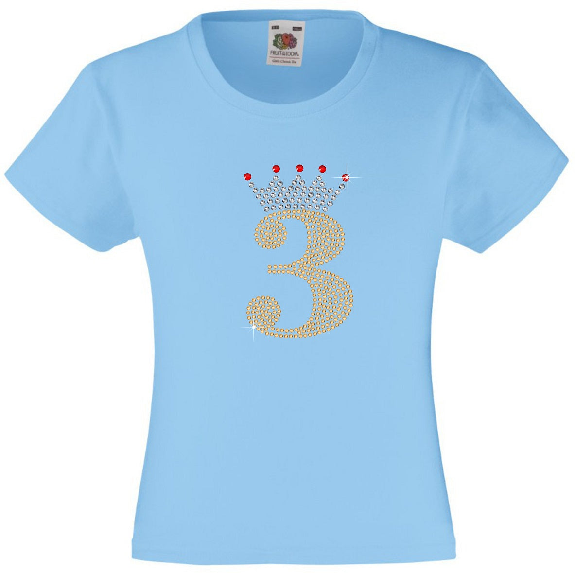 NUMBER 3 IN GOLD COLOUR WITH TIARA GIRLS T SHIRT, RHINESTONE EMBELLISHED BIRTHDAY T SHIRT, ELEGANT GIFT FOR THEIR BIG DAY