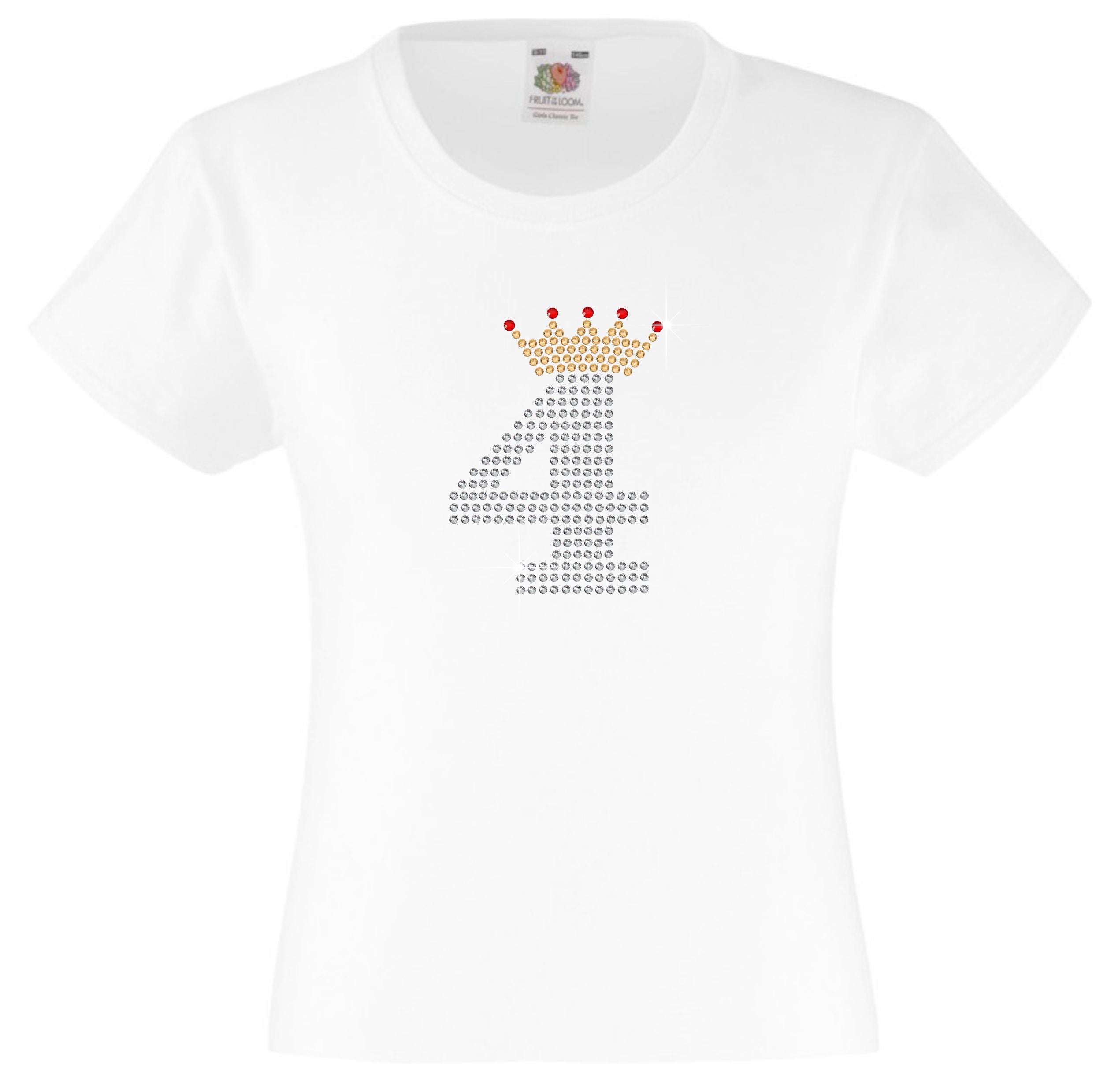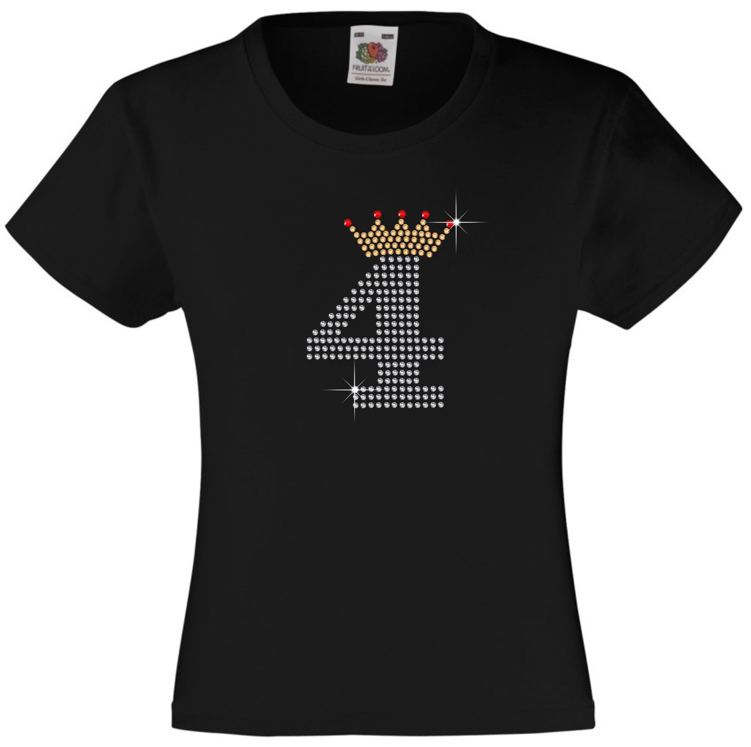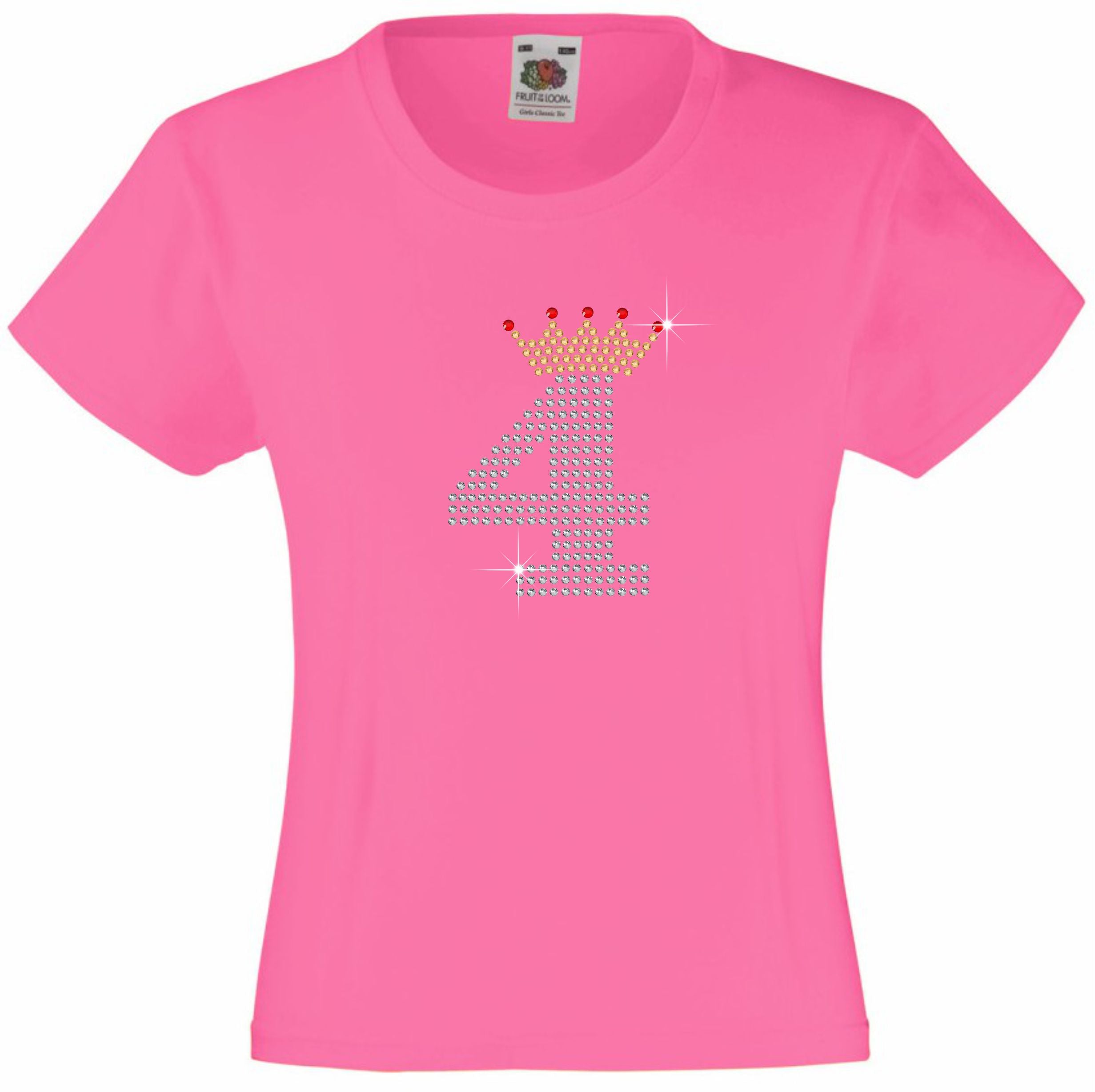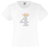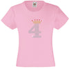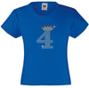 NUMBER 4 IN CRYSTAL COLOUR WITH TIARA GIRLS T SHIRT, RHINESTONE EMBELLISHED BIRTHDAY T SHIRT, ELEGANT GIFT FOR THEIR BIG DAY