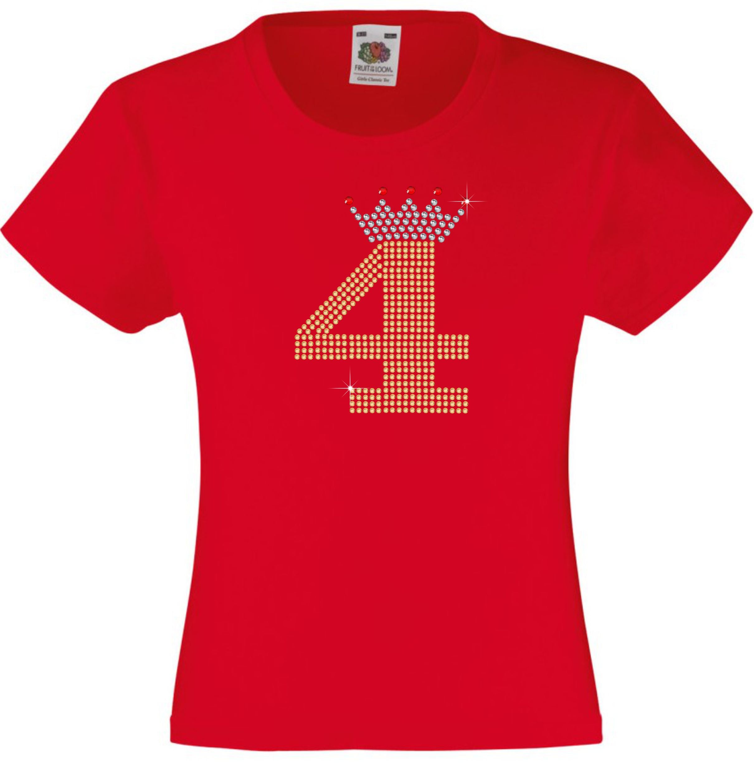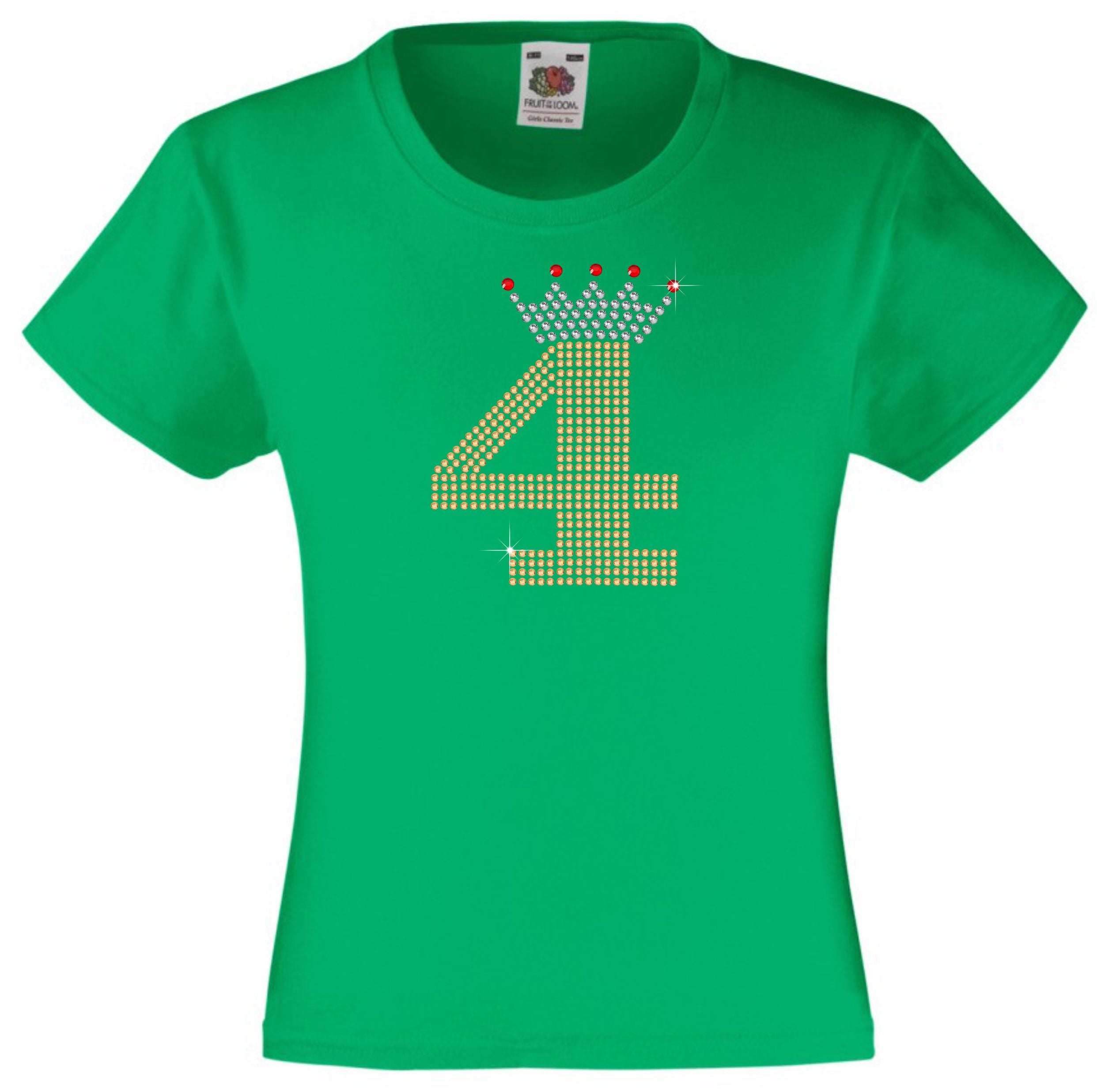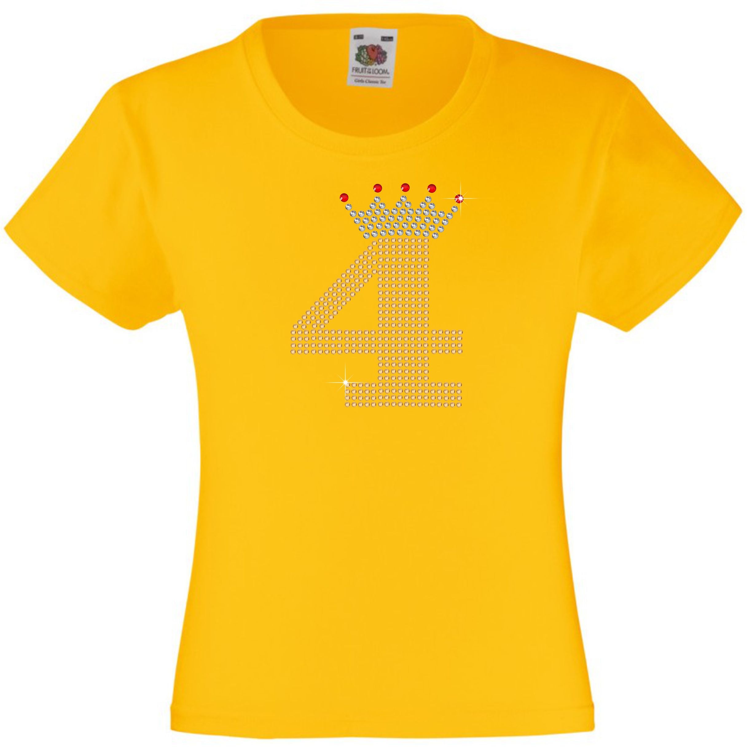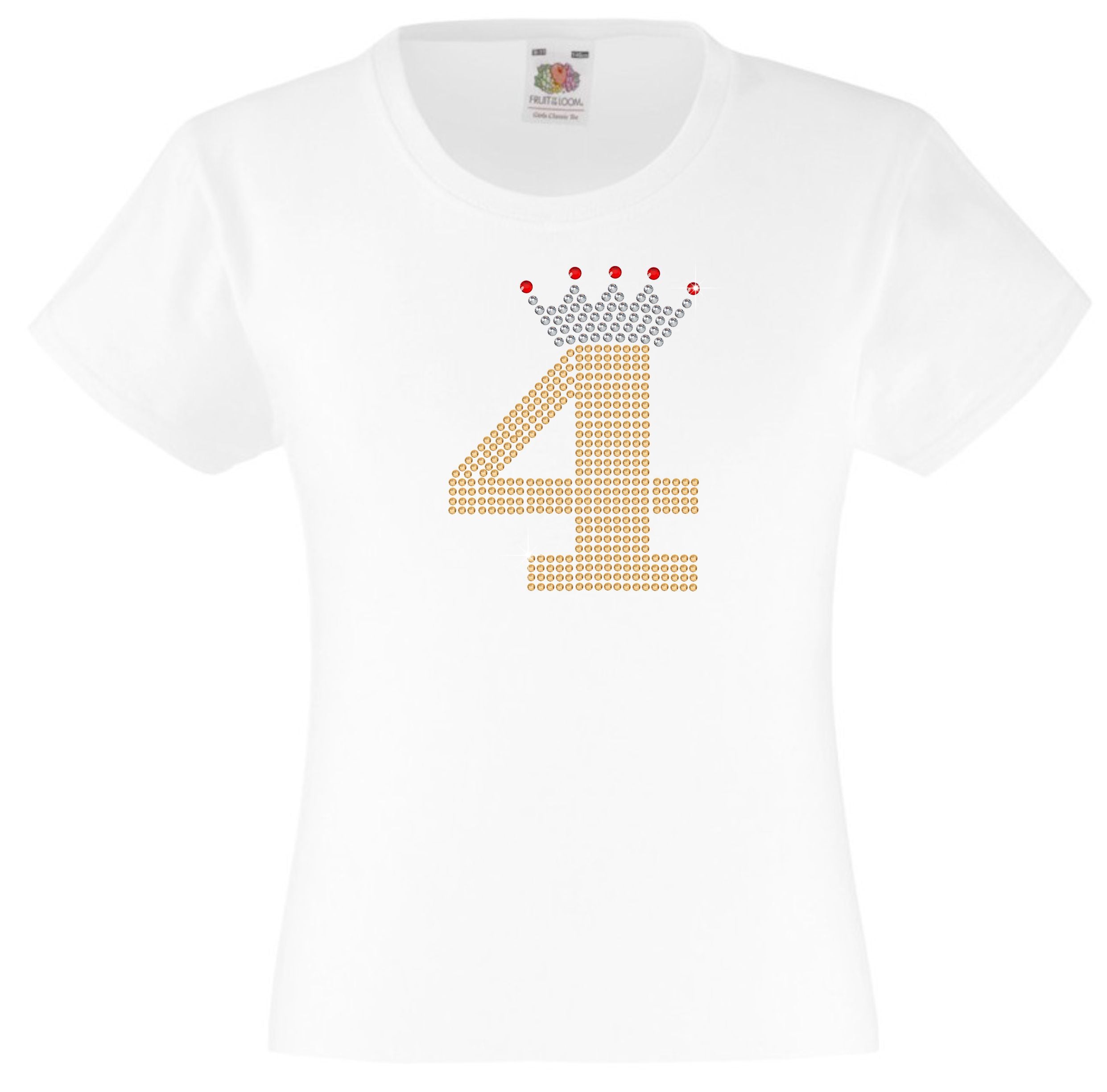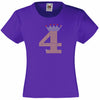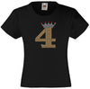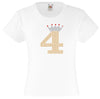 NUMBER 4 IN GOLD COLOUR WITH TIARA GIRLS T SHIRT, RHINESTONE EMBELLISHED BIRTHDAY T SHIRT, ELEGANT GIFT FOR THEIR BIG DAY