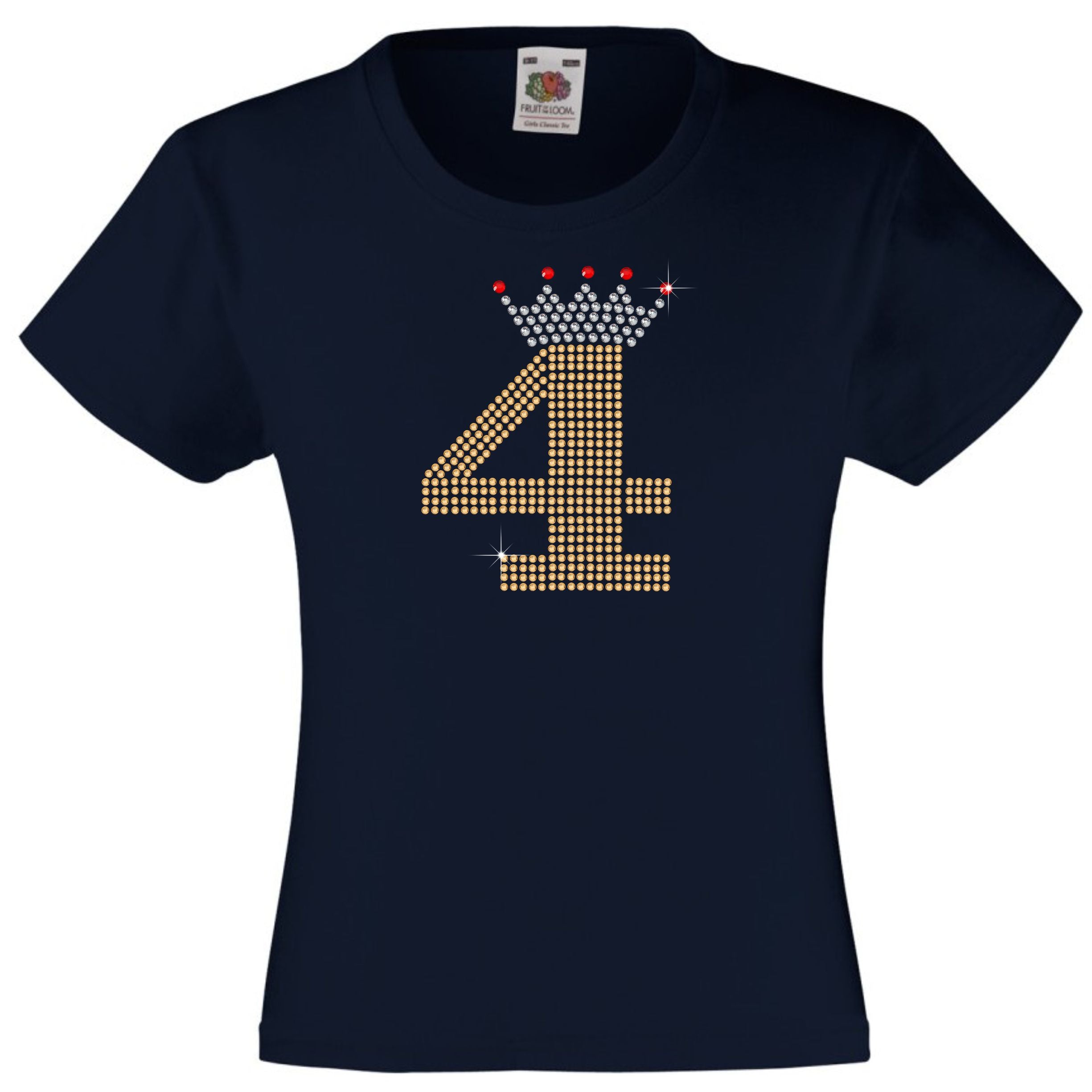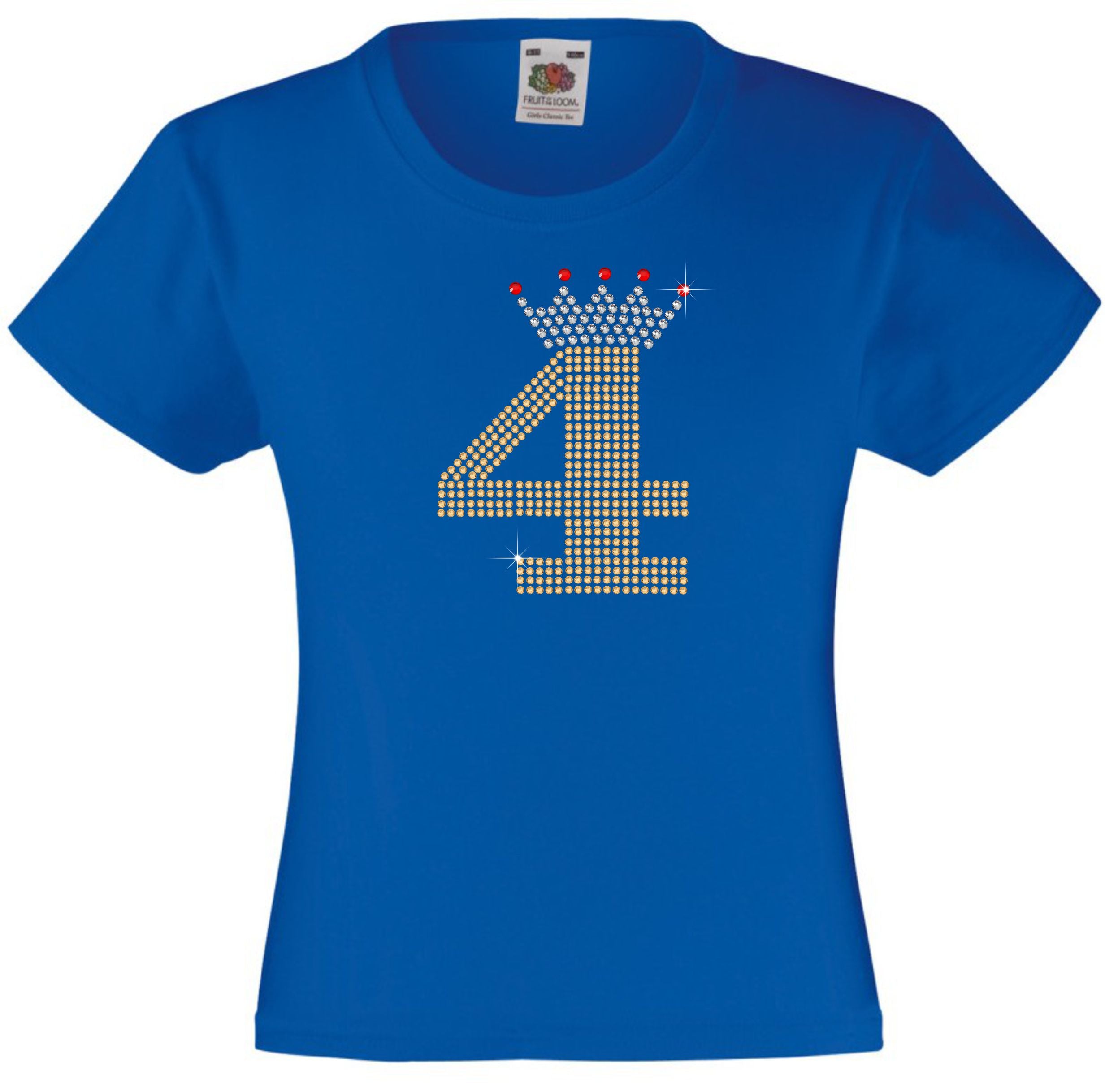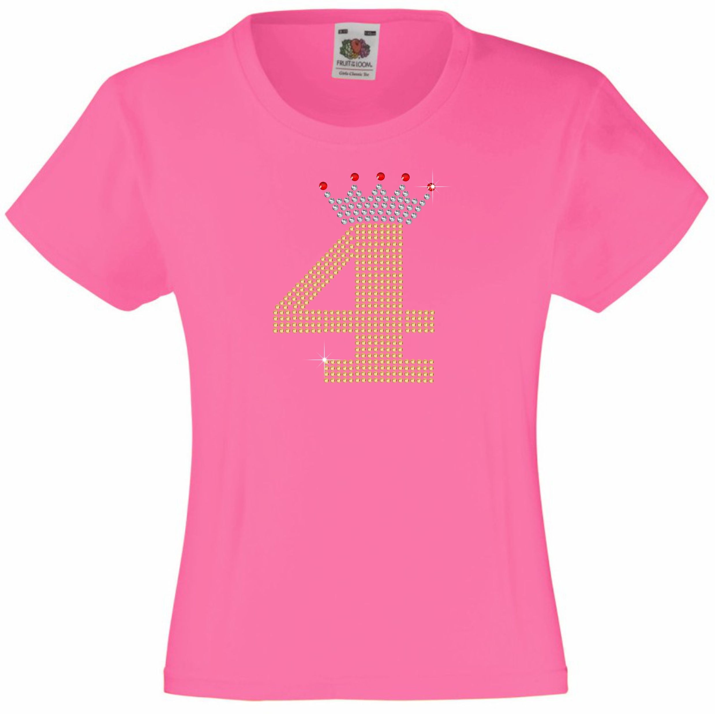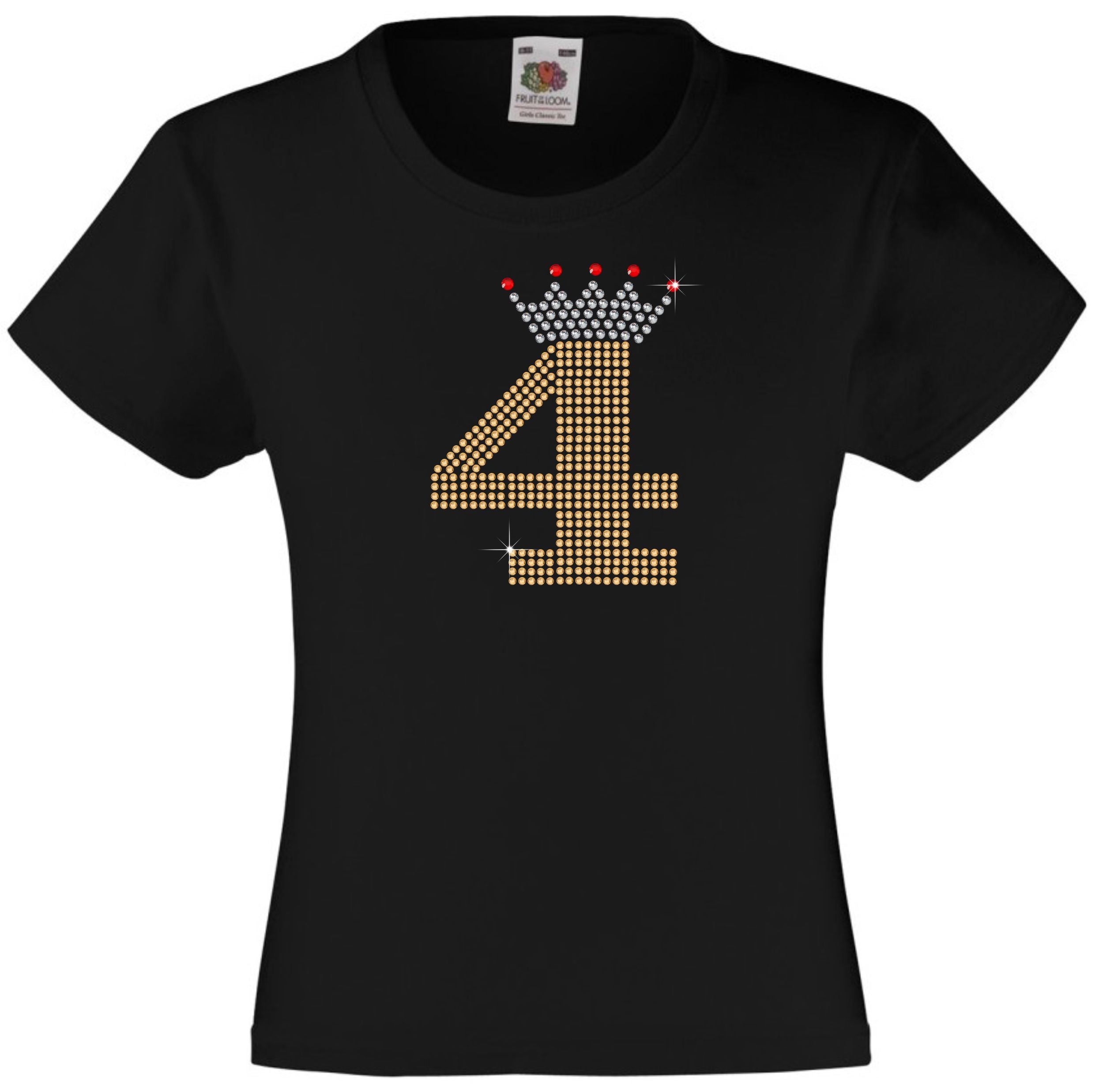 NUMBER 4 IN GOLD COLOUR WITH TIARA GIRLS T SHIRT, RHINESTONE EMBELLISHED BIRTHDAY T SHIRT, ELEGANT GIFT FOR THEIR BIG DAY