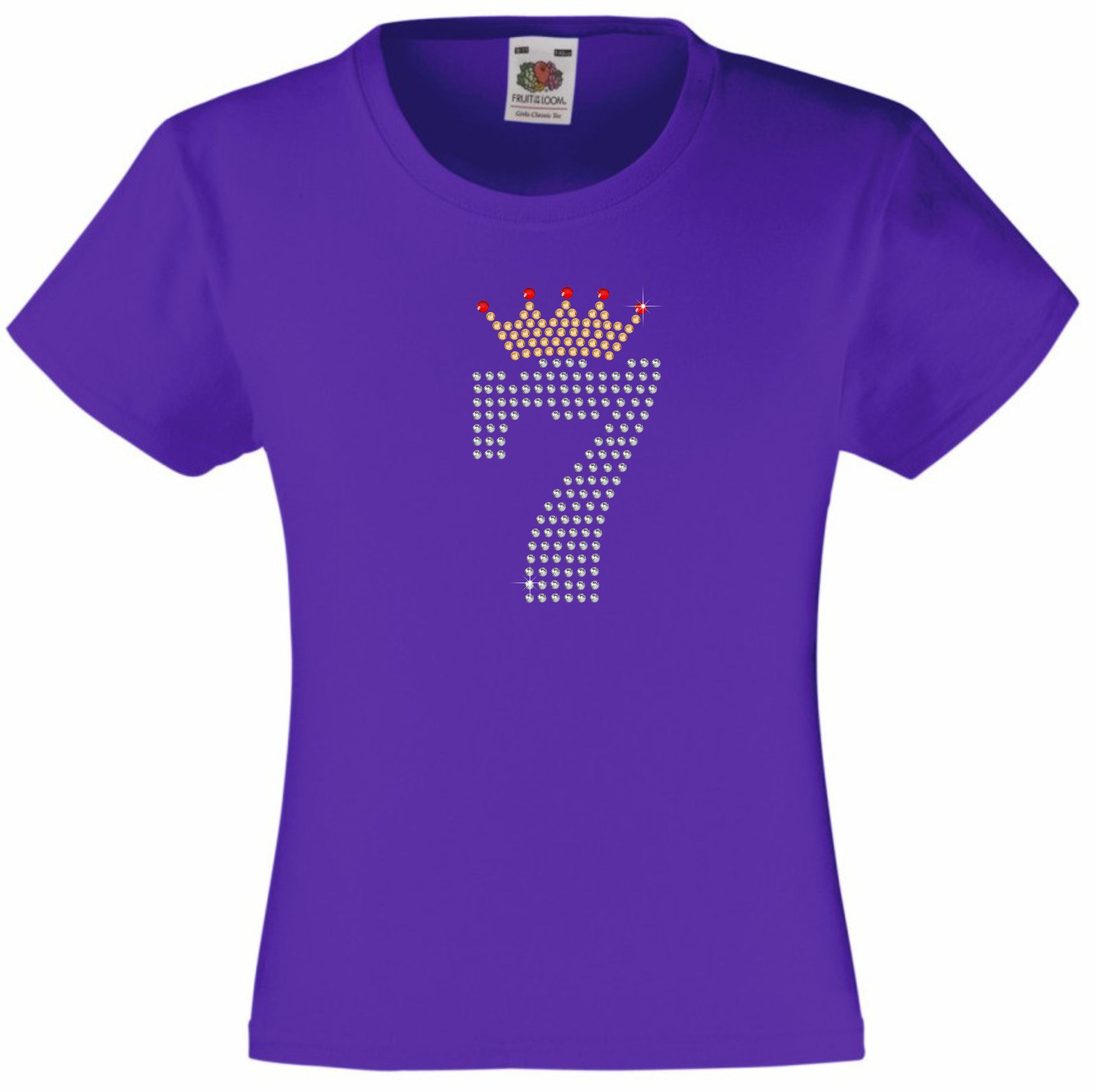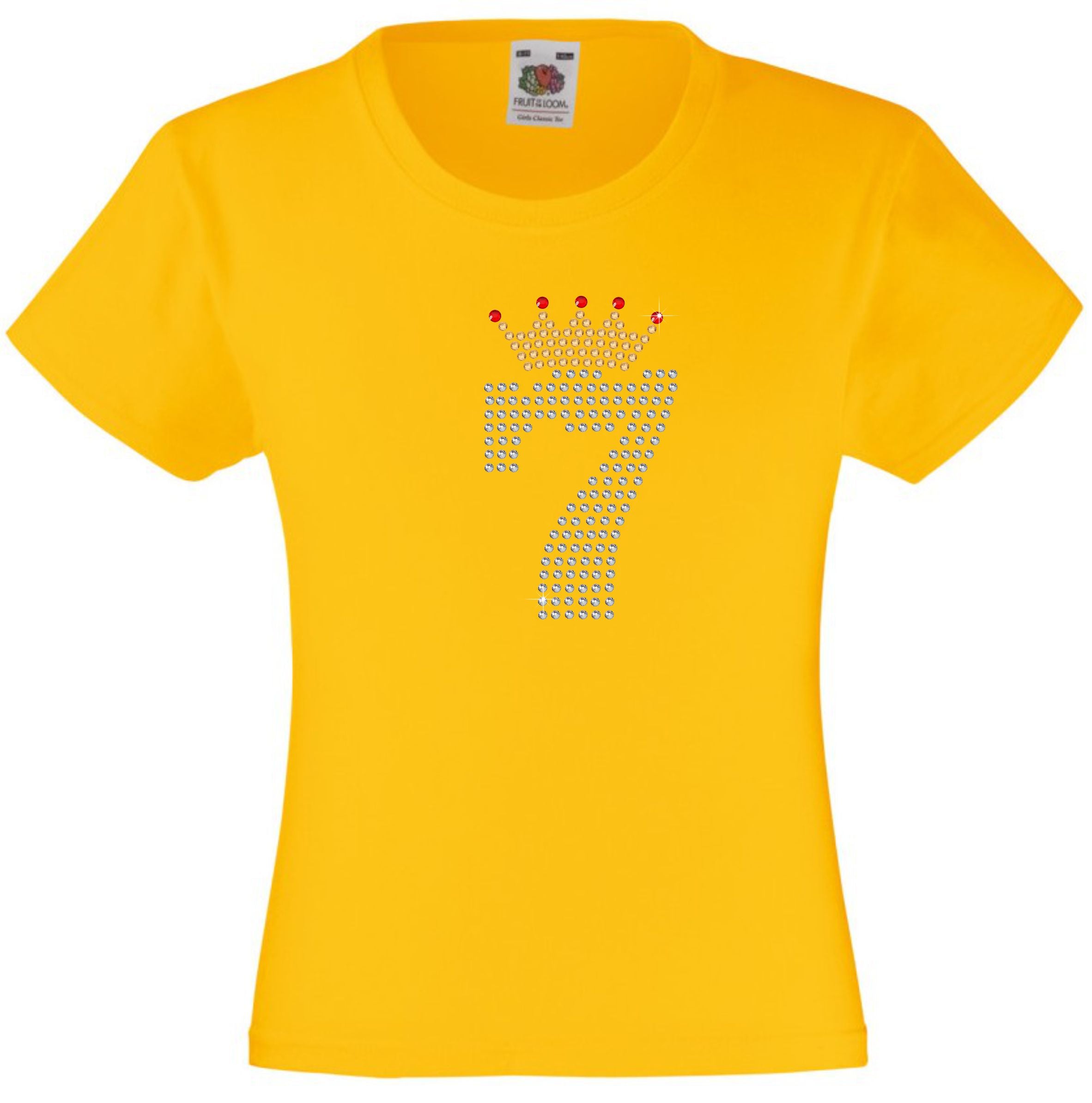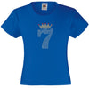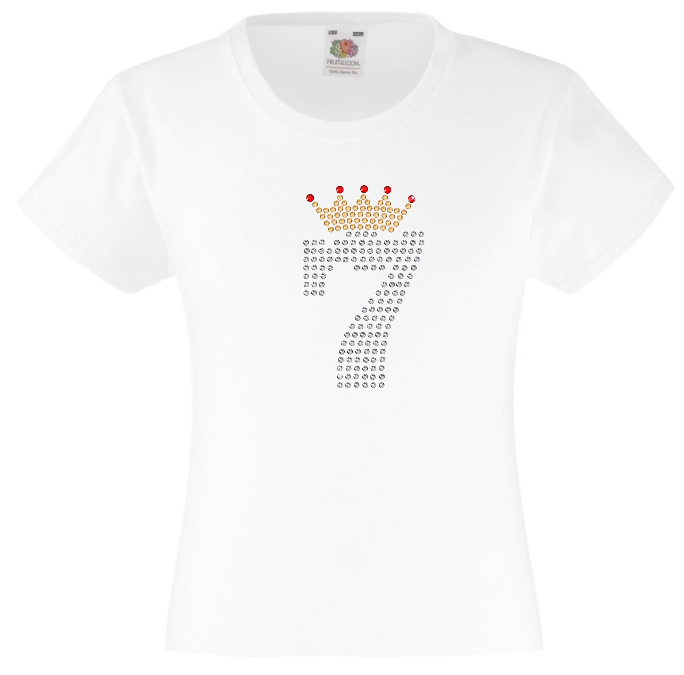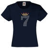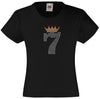 NUMBER 7 IN CRYSTAL COLOUR WITH TIARA GIRLS T SHIRT, RHINESTONE EMBELLISHED BIRTHDAY T SHIRT, ELEGANT GIFT FOR THEIR BIG DAY