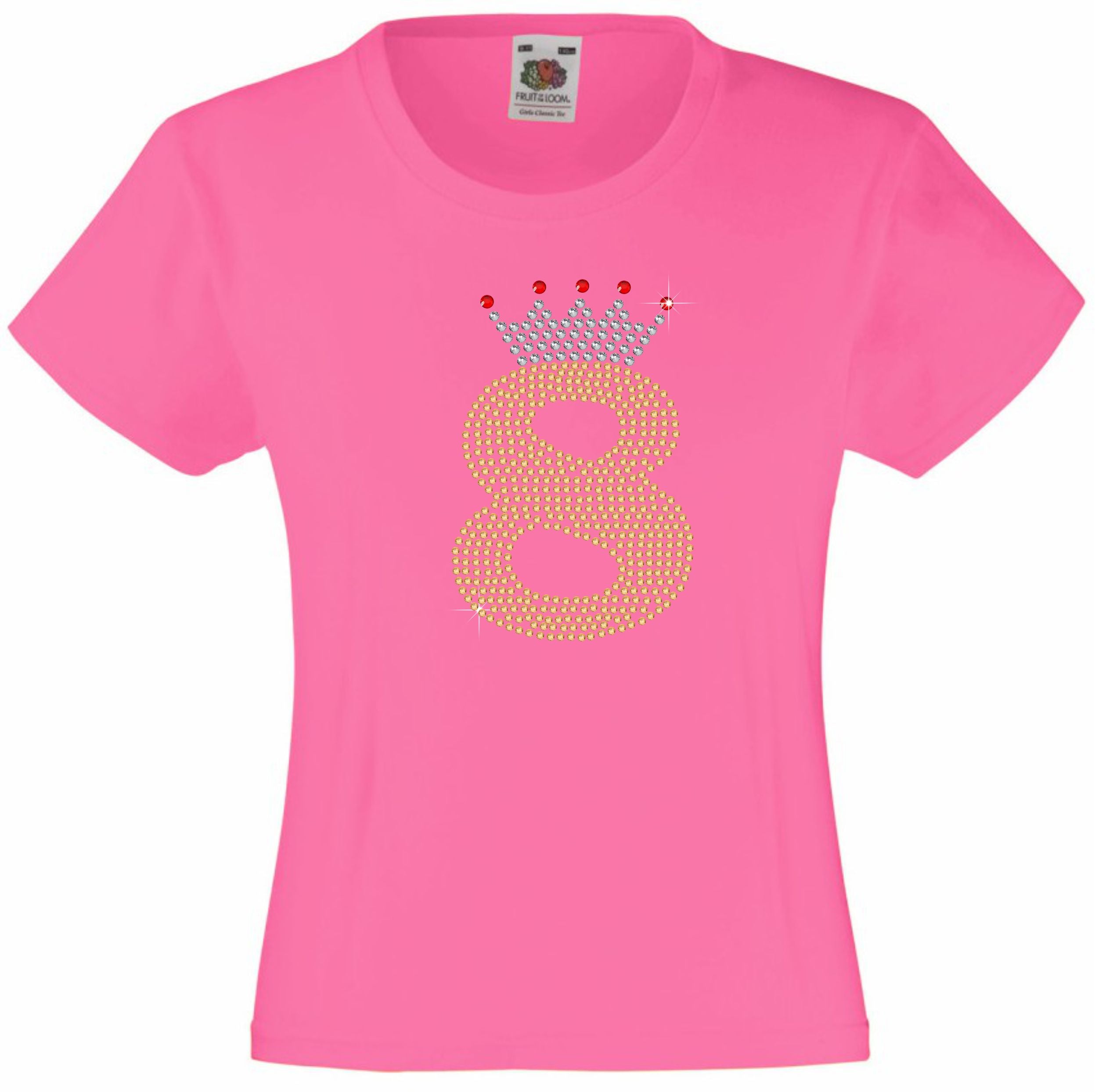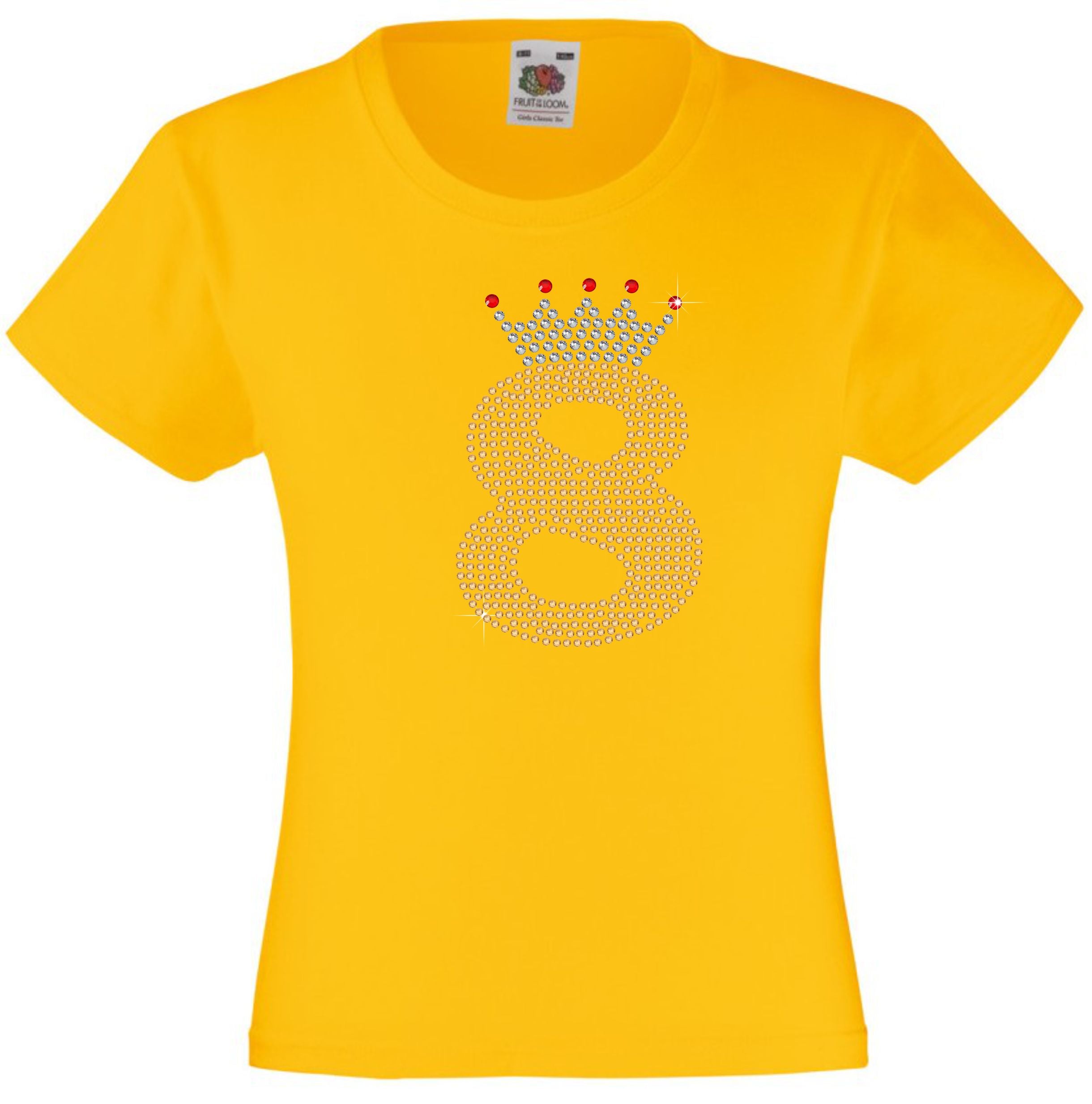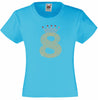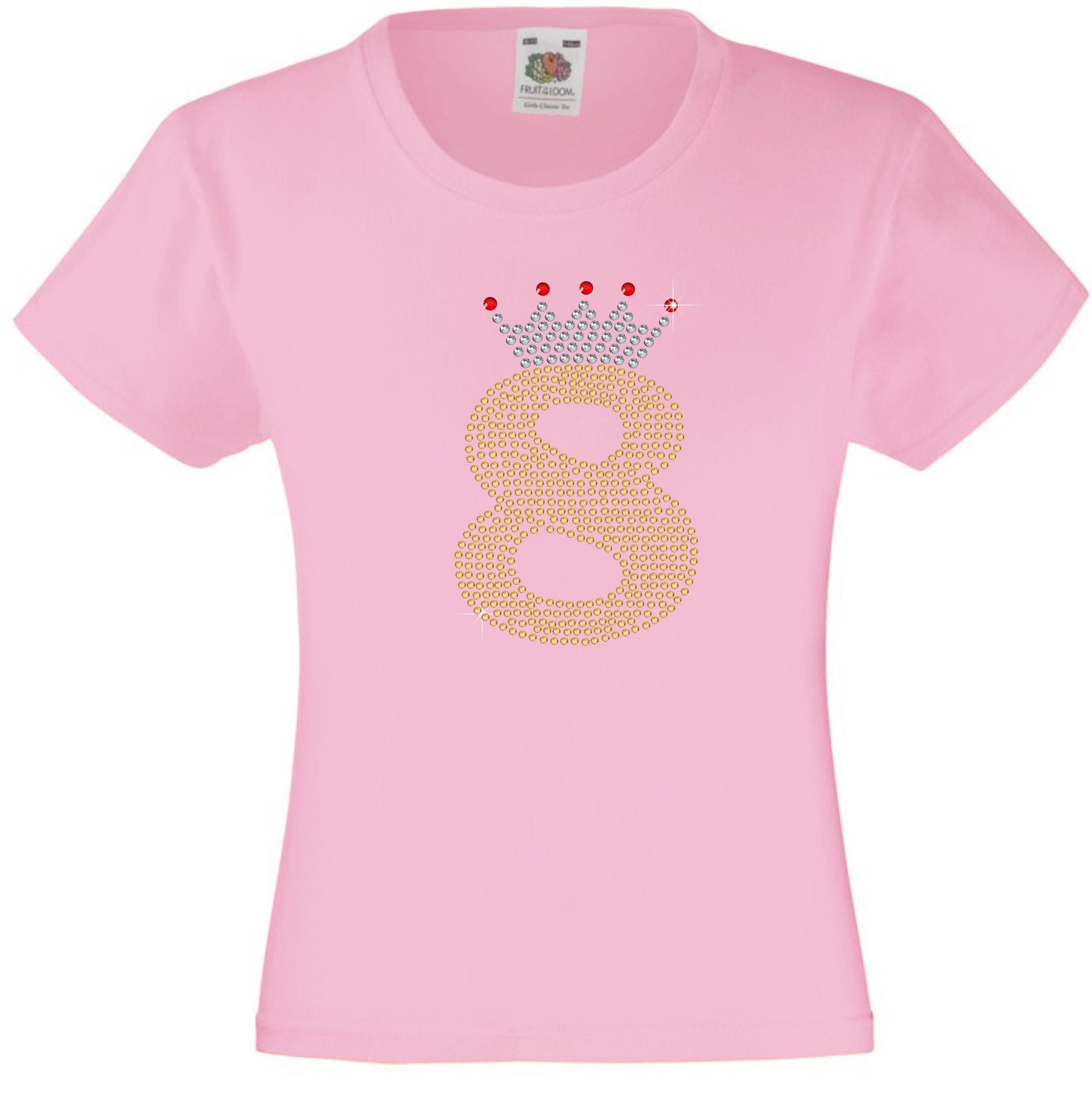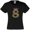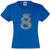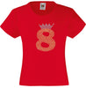 NUMBER 8 IN GOLD COLOUR WITH TIARA GIRLS T SHIRT, RHINESTONE EMBELLISHED BIRTHDAY T SHIRT, ELEGANT GIFT FOR THEIR BIG DAY
