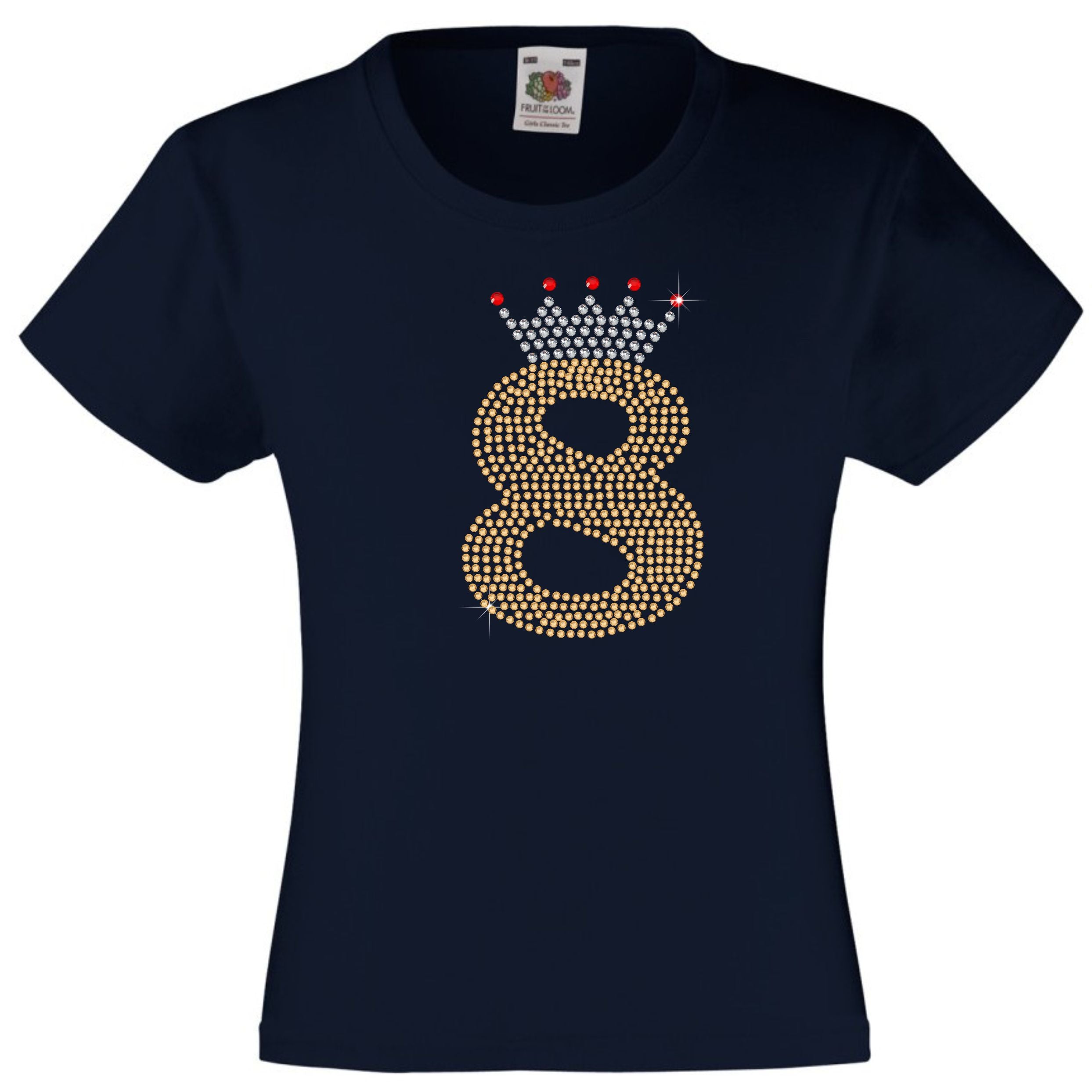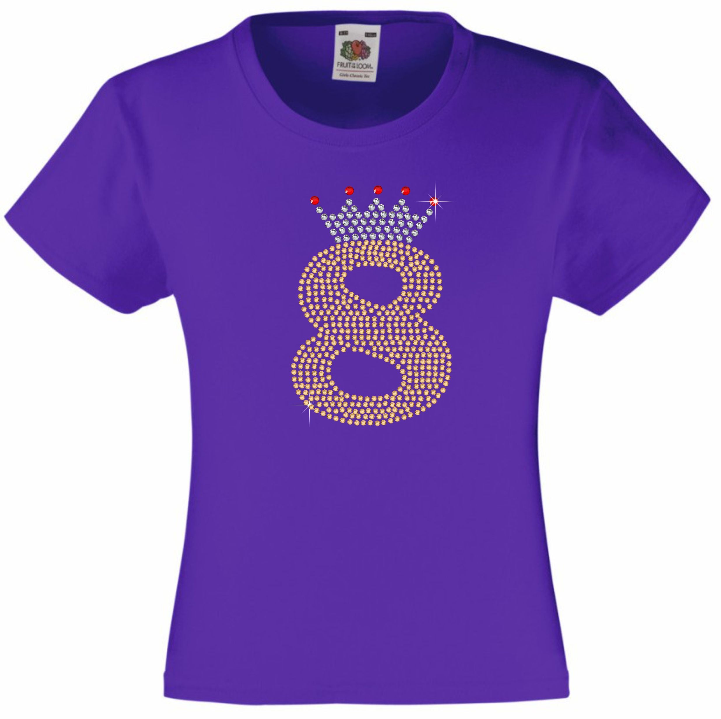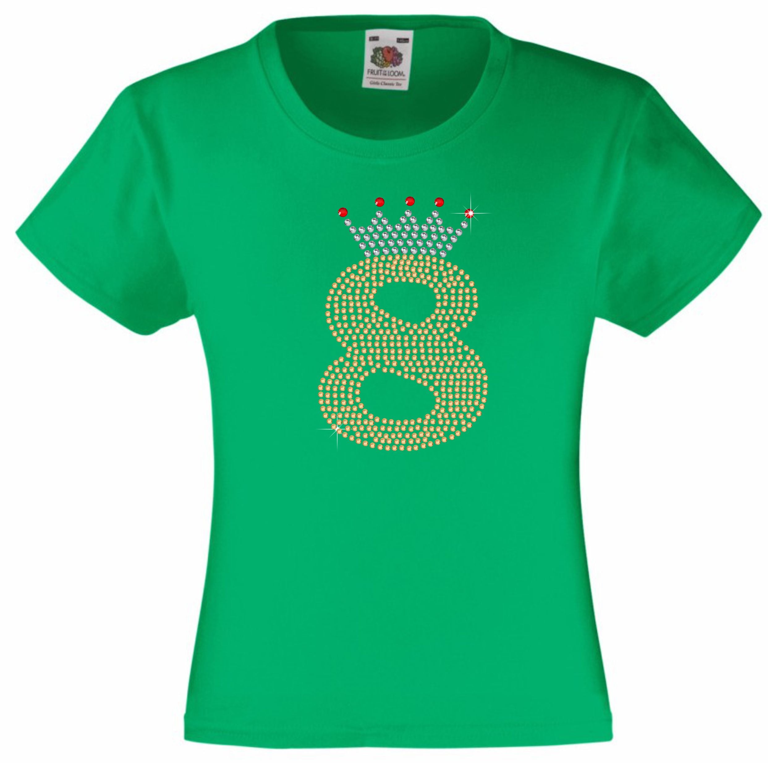 NUMBER 8 IN GOLD COLOUR WITH TIARA GIRLS T SHIRT, RHINESTONE EMBELLISHED BIRTHDAY T SHIRT, ELEGANT GIFT FOR THEIR BIG DAY