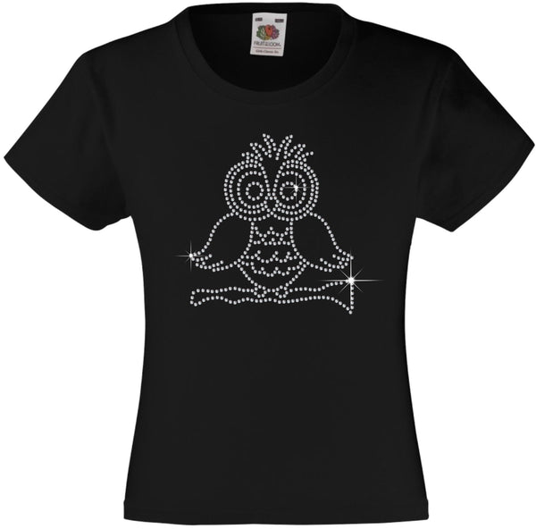 OWL RHINESTONE EMBELLISHED T-SHIRT ELEGANT GIFT FOR ANIMAL LOVING GIRLS