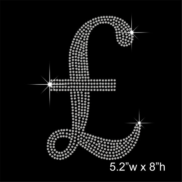 Pound Sterling Sign Hotfix Rhinestone Transfer Diamante Motif, Iron-on Applique