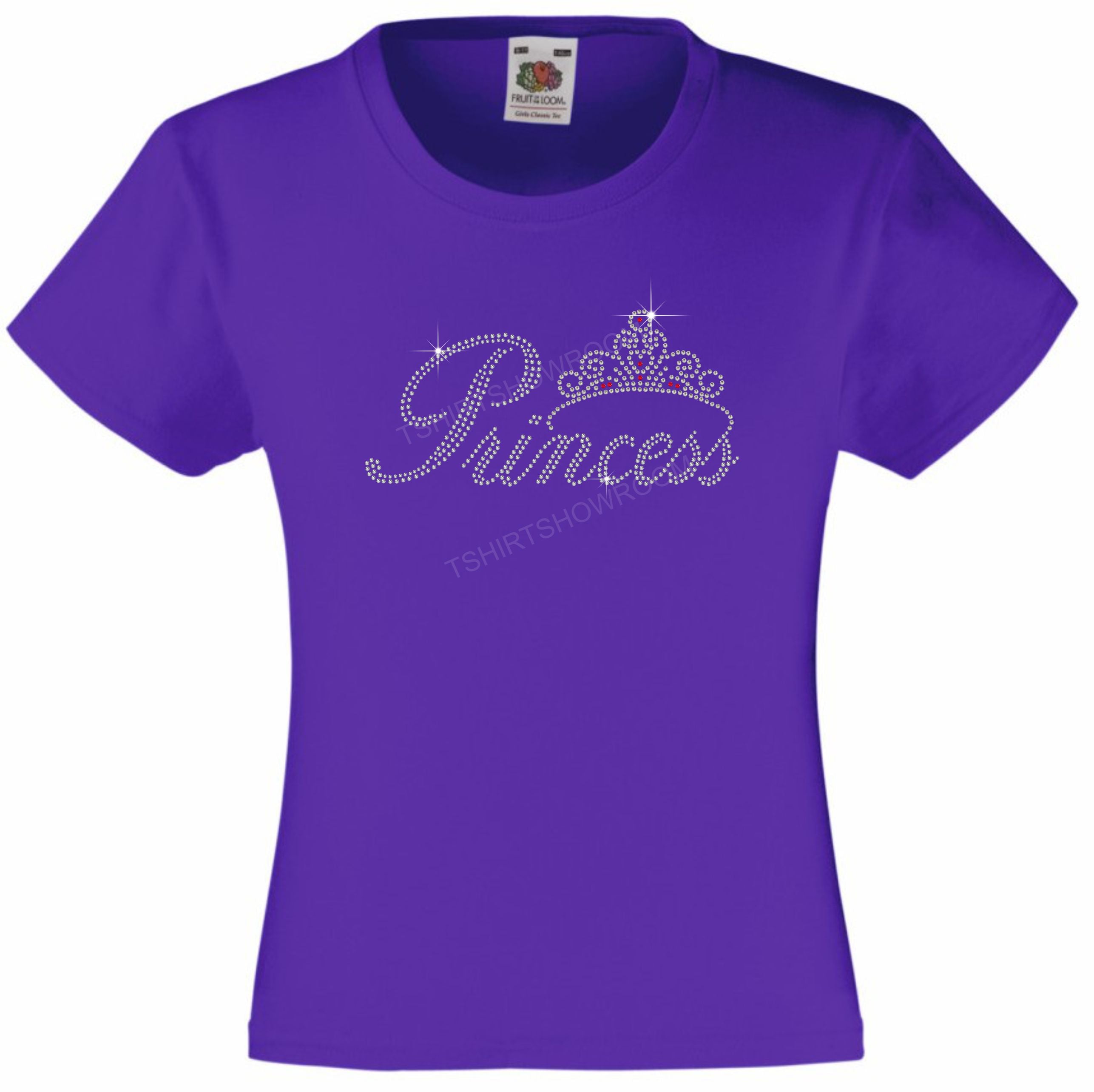 PRINCESS AND TIARA GIRLS' T-SHIRT RHINESTONE EMBELLISHED T-SHIRT ELEGANT GIFT