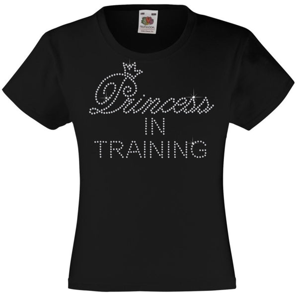 PRINCESS IN TRAINING GIRLS T SHIRT RHINESTONE EMBELLISHED T-SHIRT ELEGANT GIFT