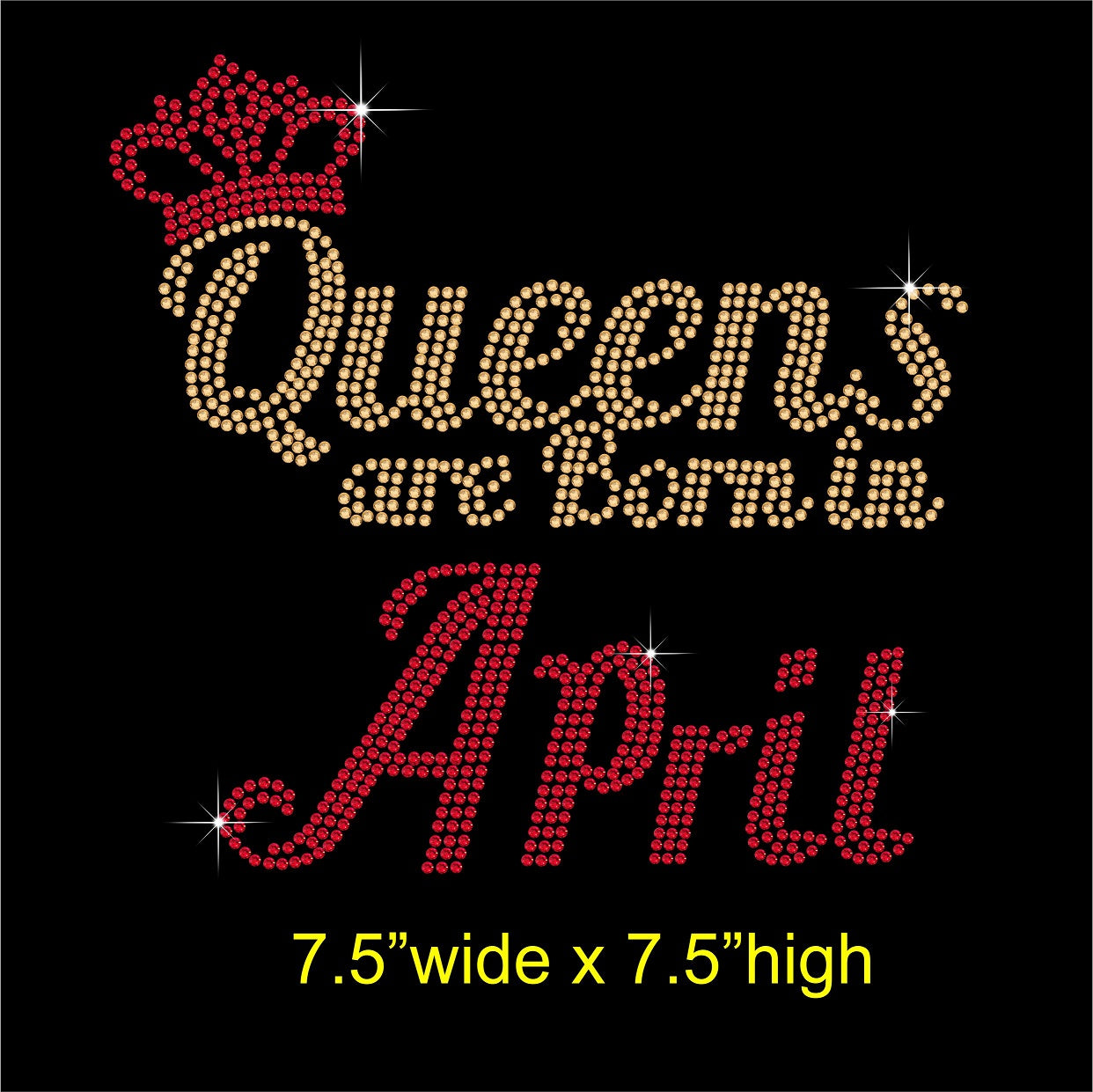 Queens are Born in April Hotfix Rhinestone Transfer Diamante Motif, Iron on Applique