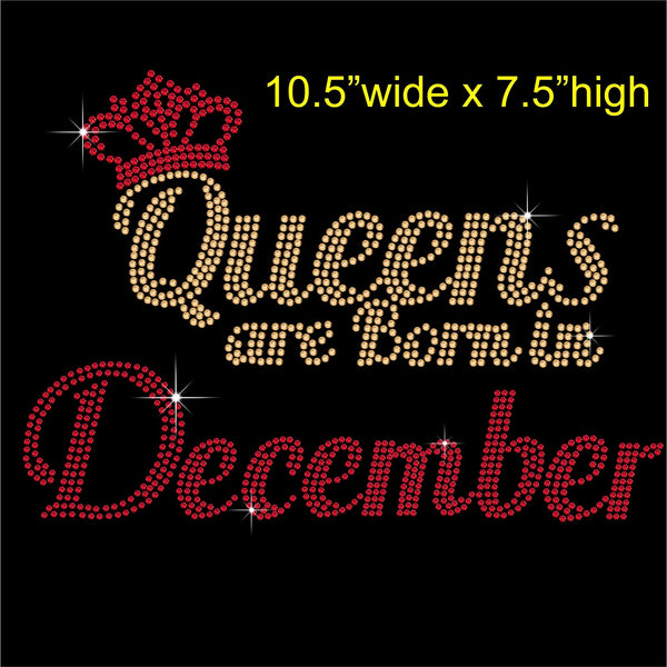 Queens are Born in December Hotfix Rhinestone Transfer Diamante Motif, Iron on Applique