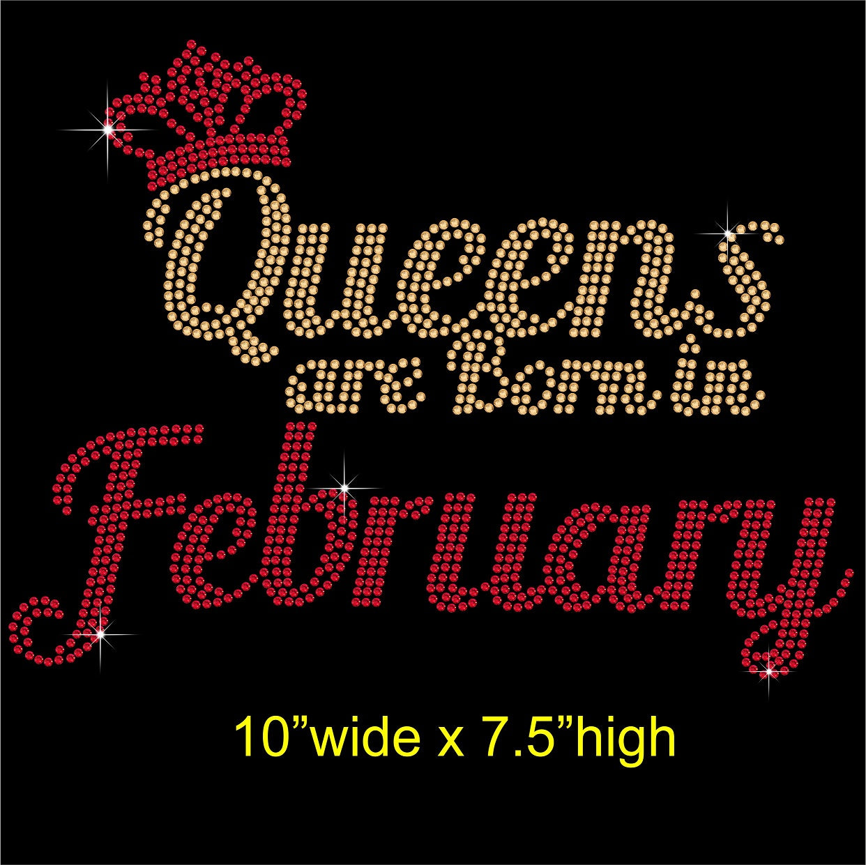 Queens are Born in February Hotfix Rhinestone Transfer Diamante Motif, Iron on Applique