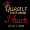 Queens are Born in March Hotfix Rhinestone Transfer Diamante Motif, Iron on Applique