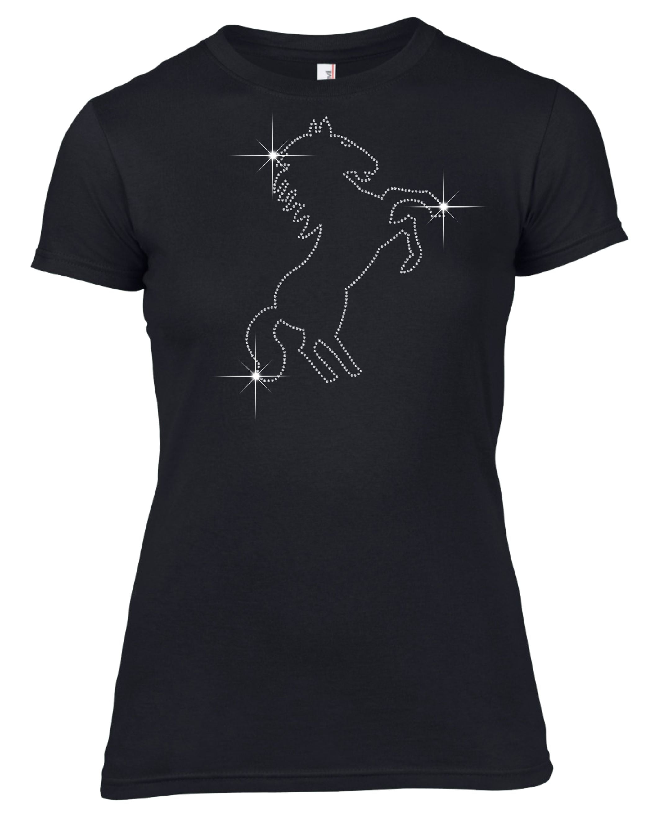 REARING HORSE RHINESTONE EMBELLISHED T-SHIRT FOR LADIES