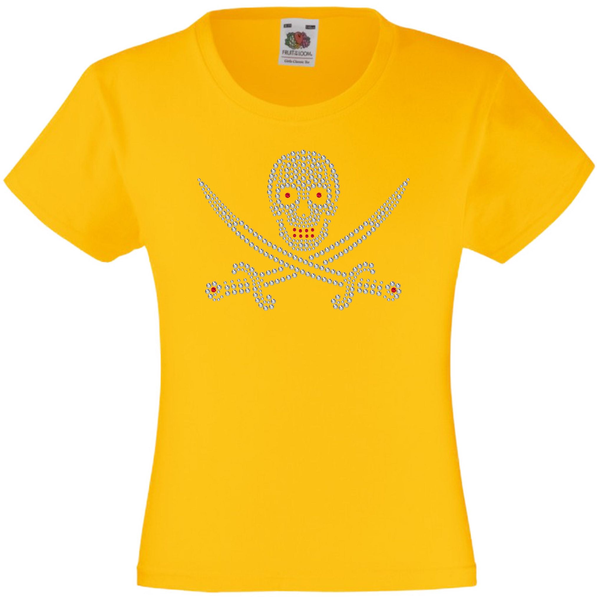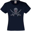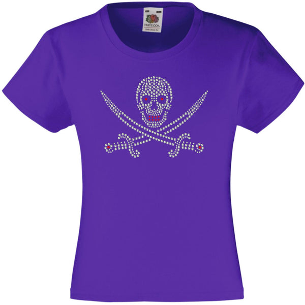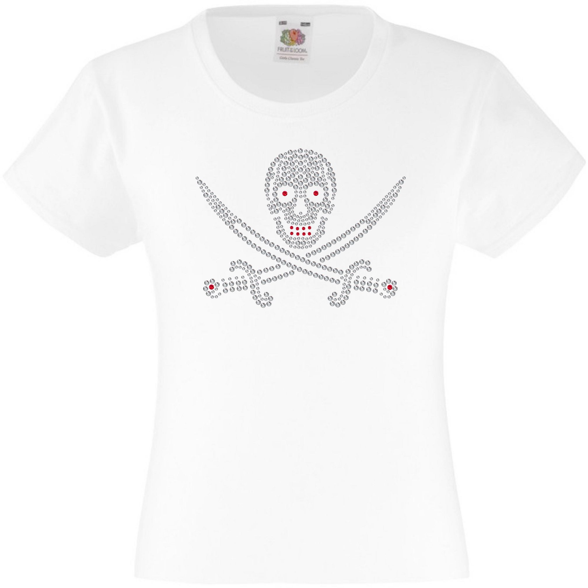 SKULL AND SWORDS HALLOWEEN SCARY RHINESTONE EMBELLISHED T-SHIRT ELEGANT GIFT FOR GIRLS