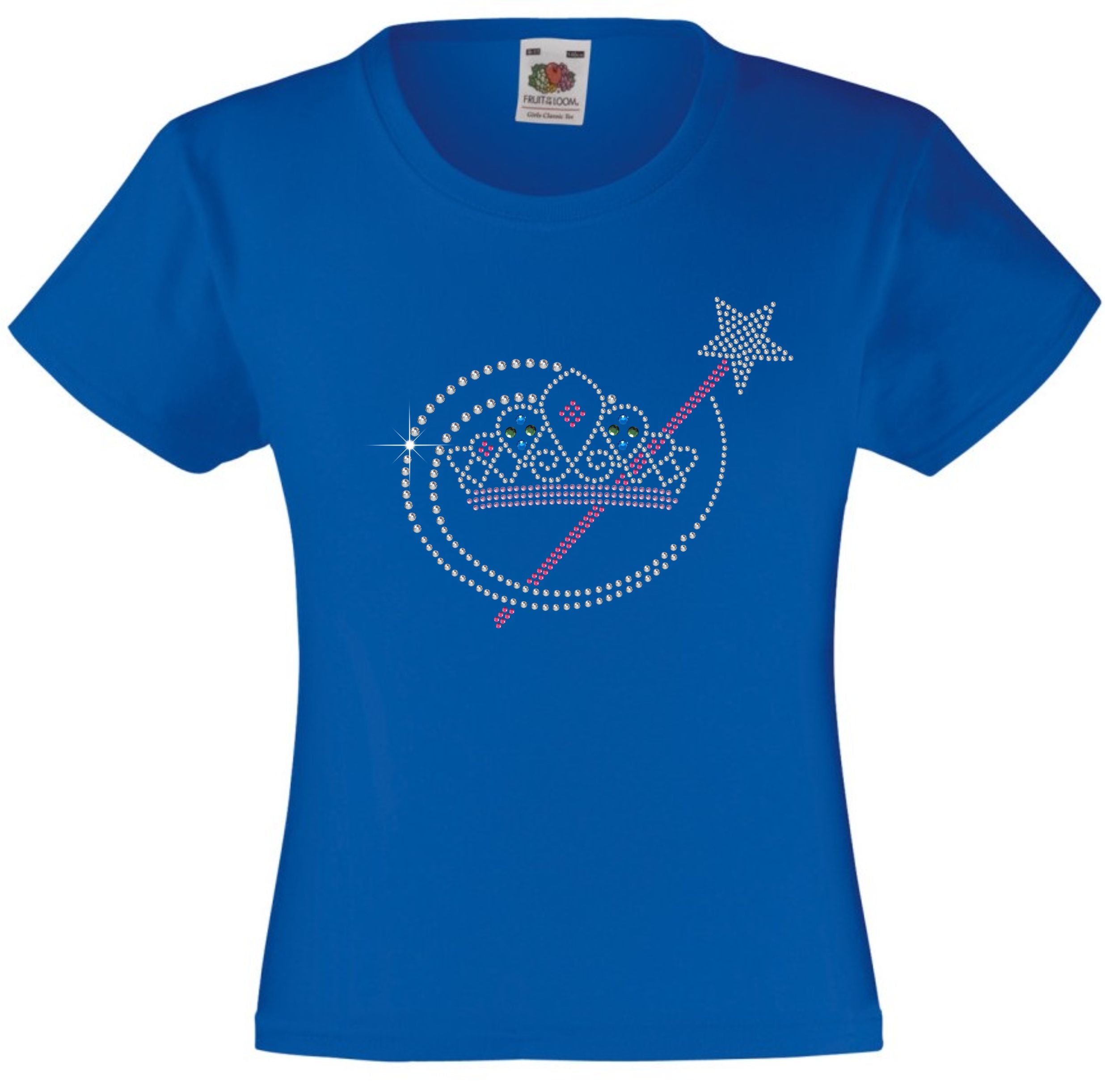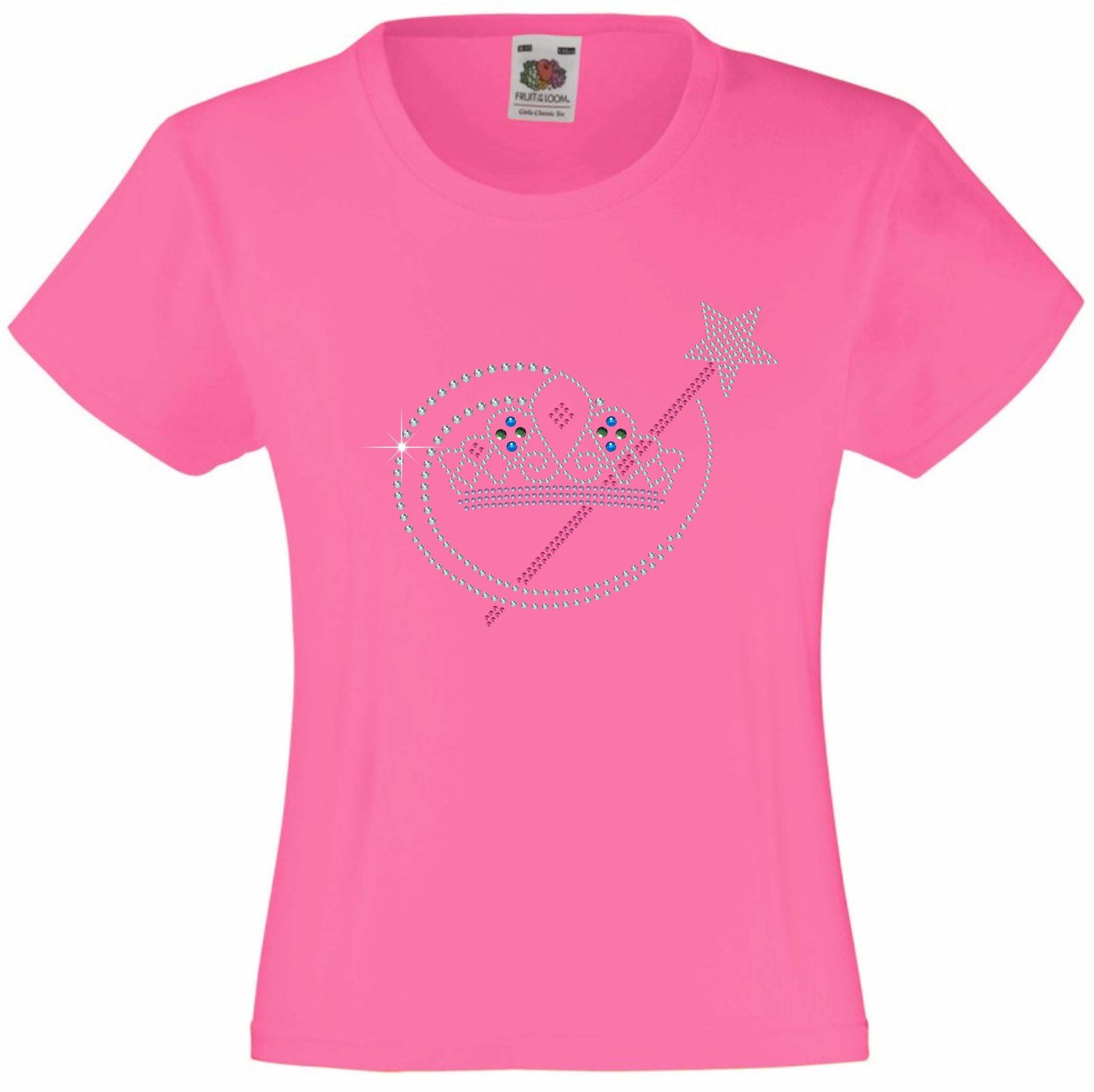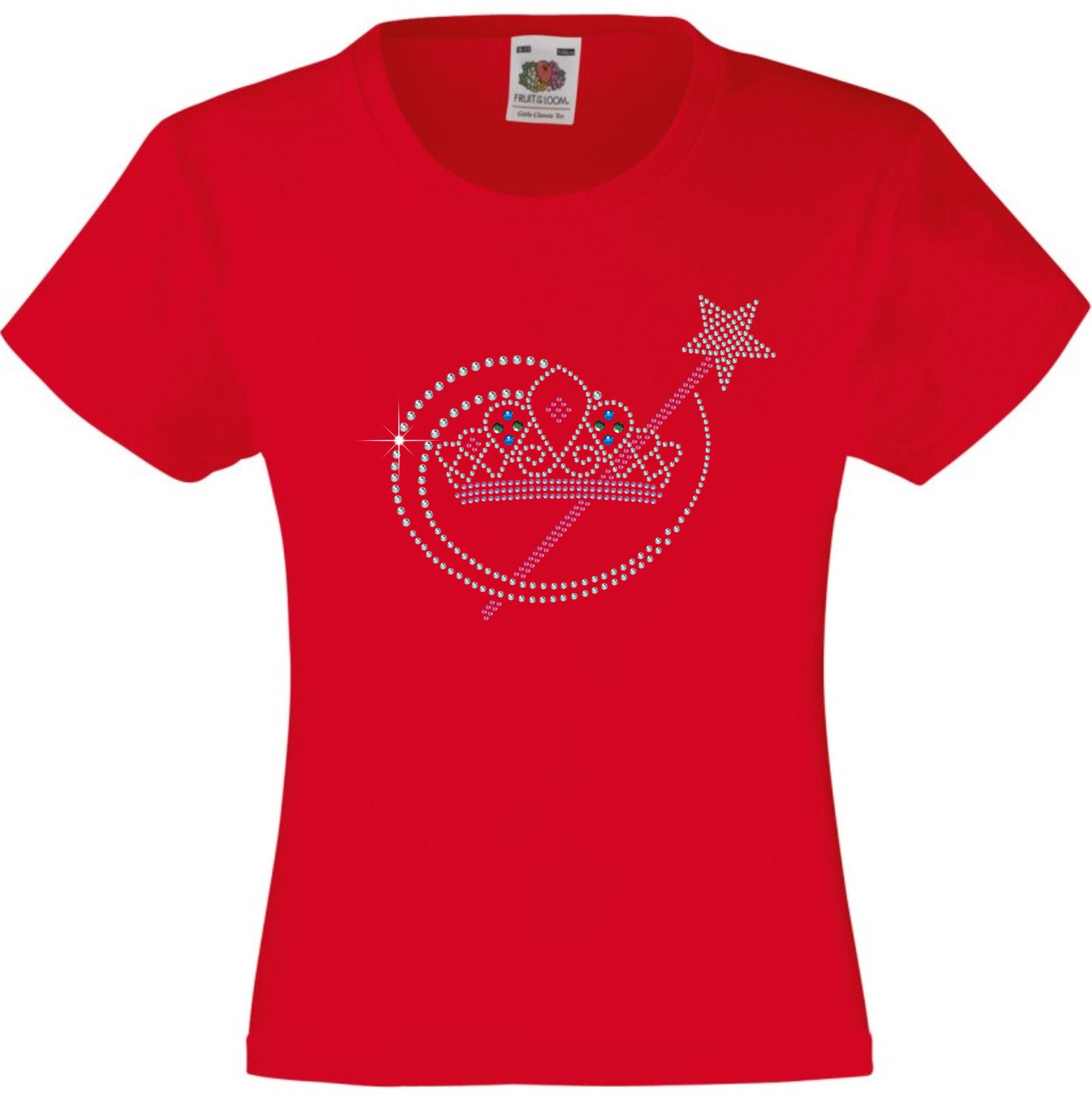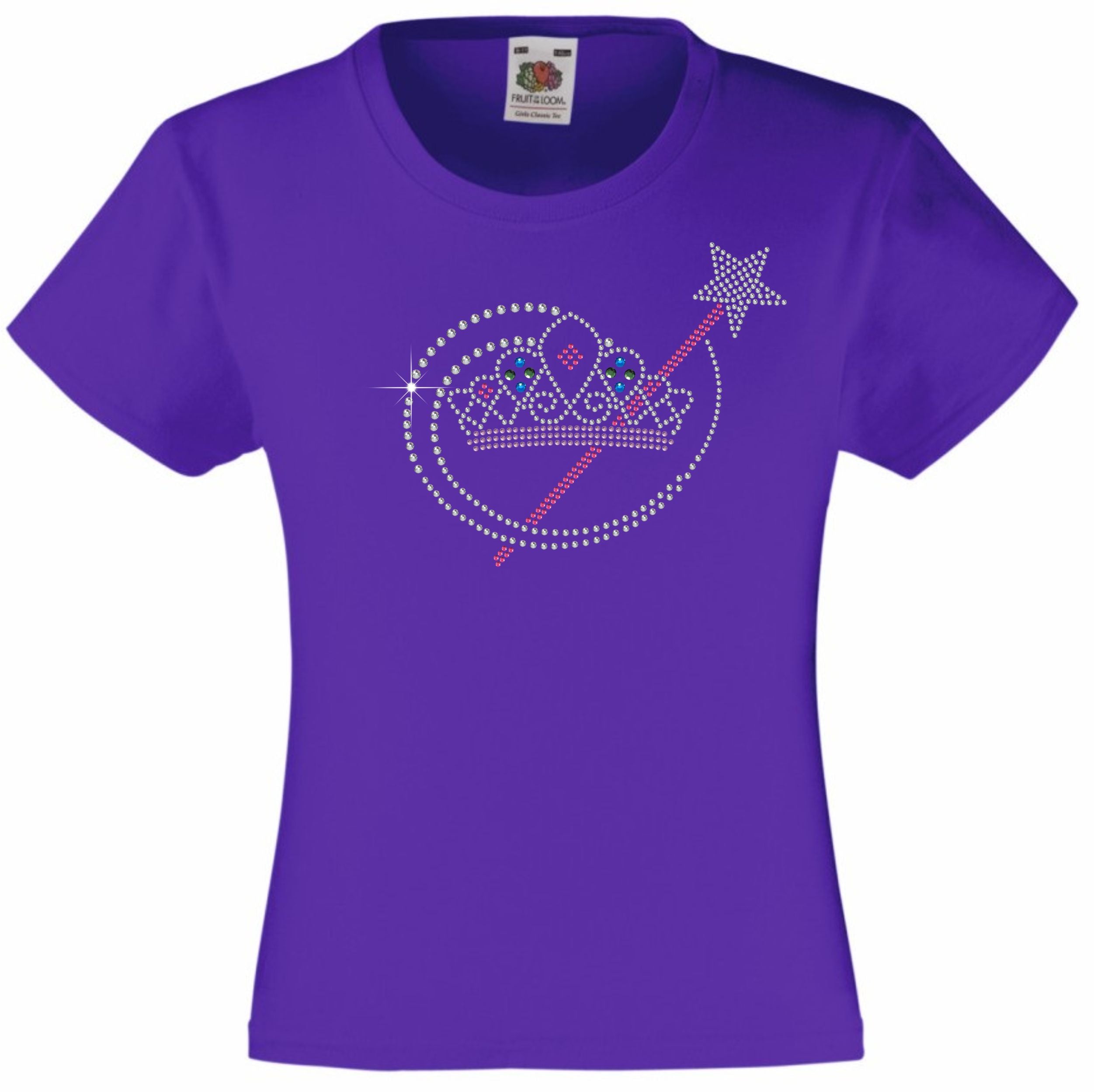 TIARA AND MAGIC WAND RHINESTONE EMBELLISHED T-SHIRT ELEGANT GIFT FOR GIRLS