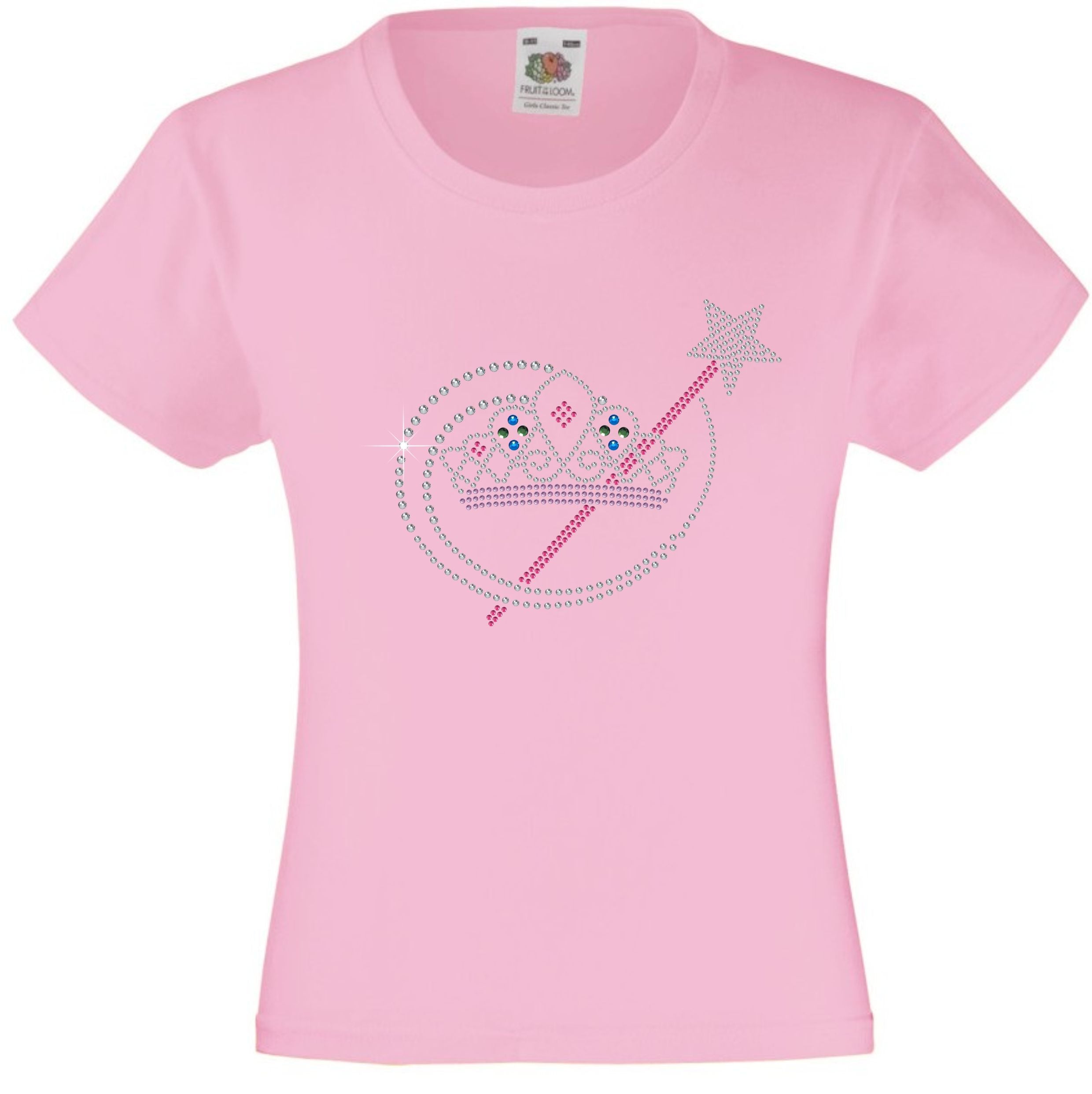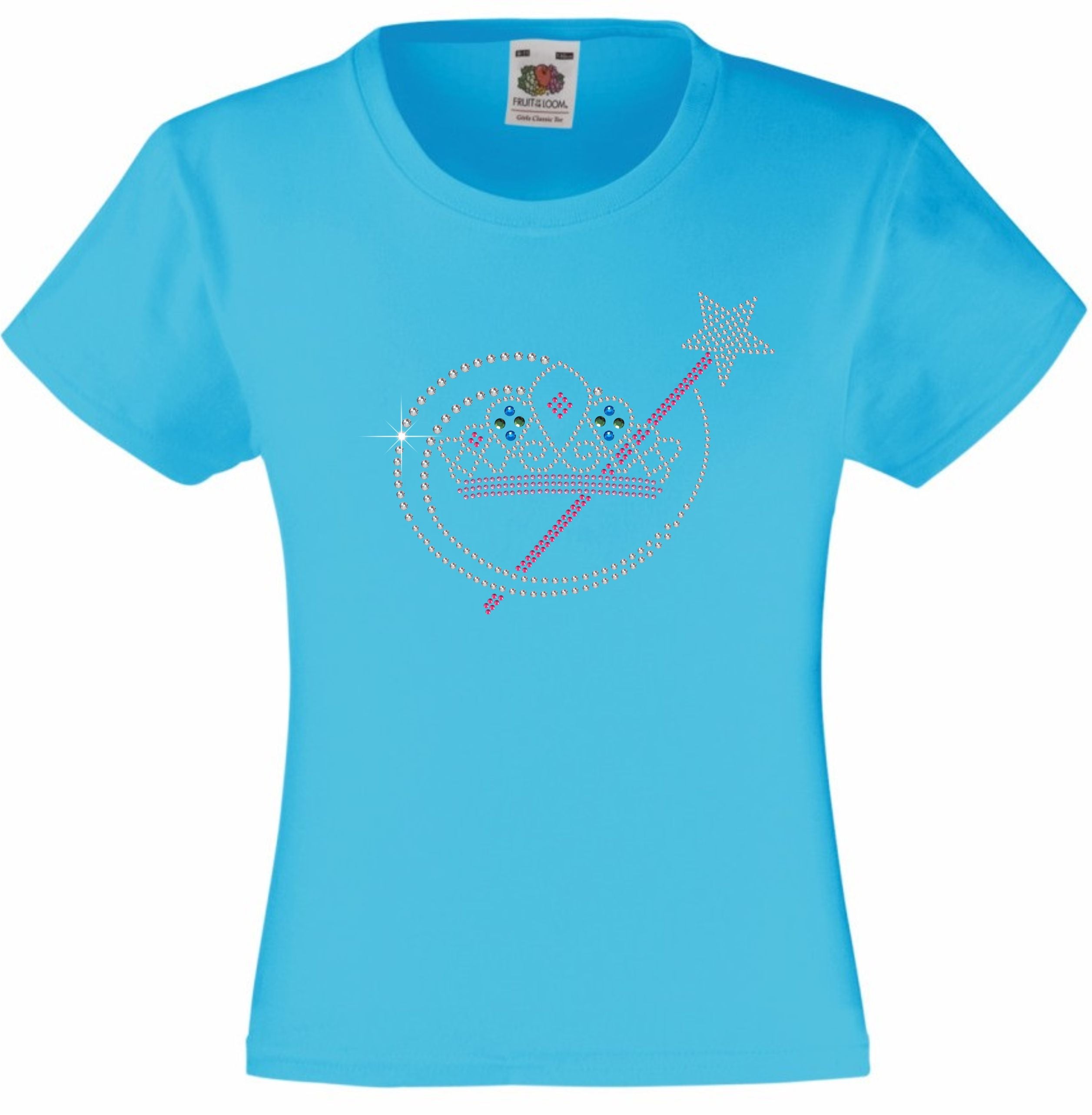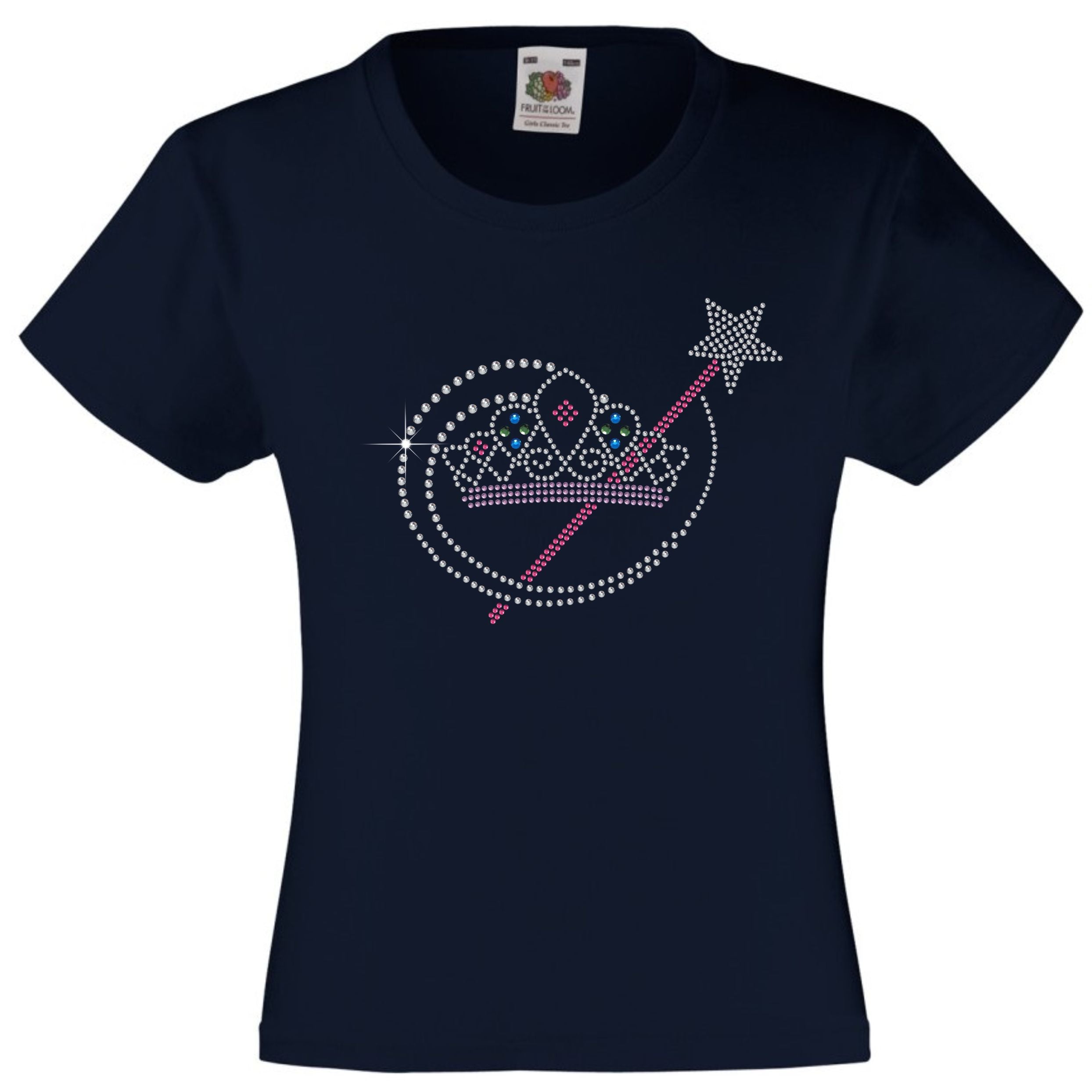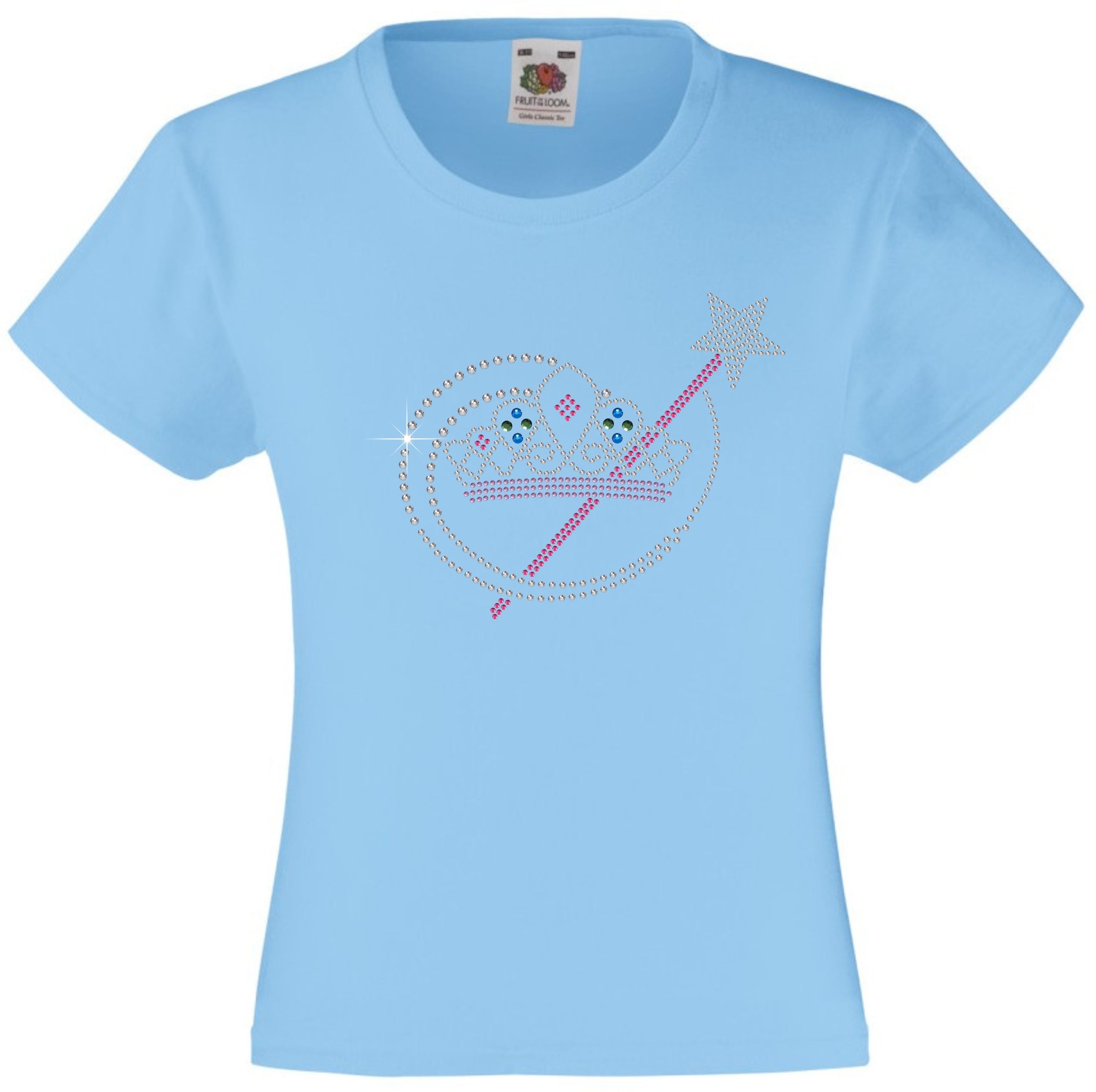 TIARA AND MAGIC WAND RHINESTONE EMBELLISHED T-SHIRT ELEGANT GIFT FOR GIRLS