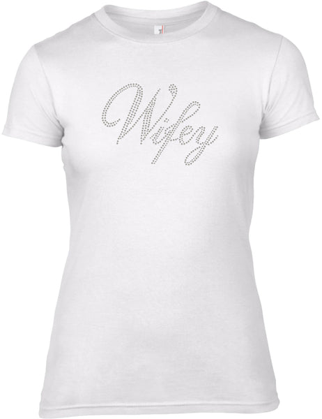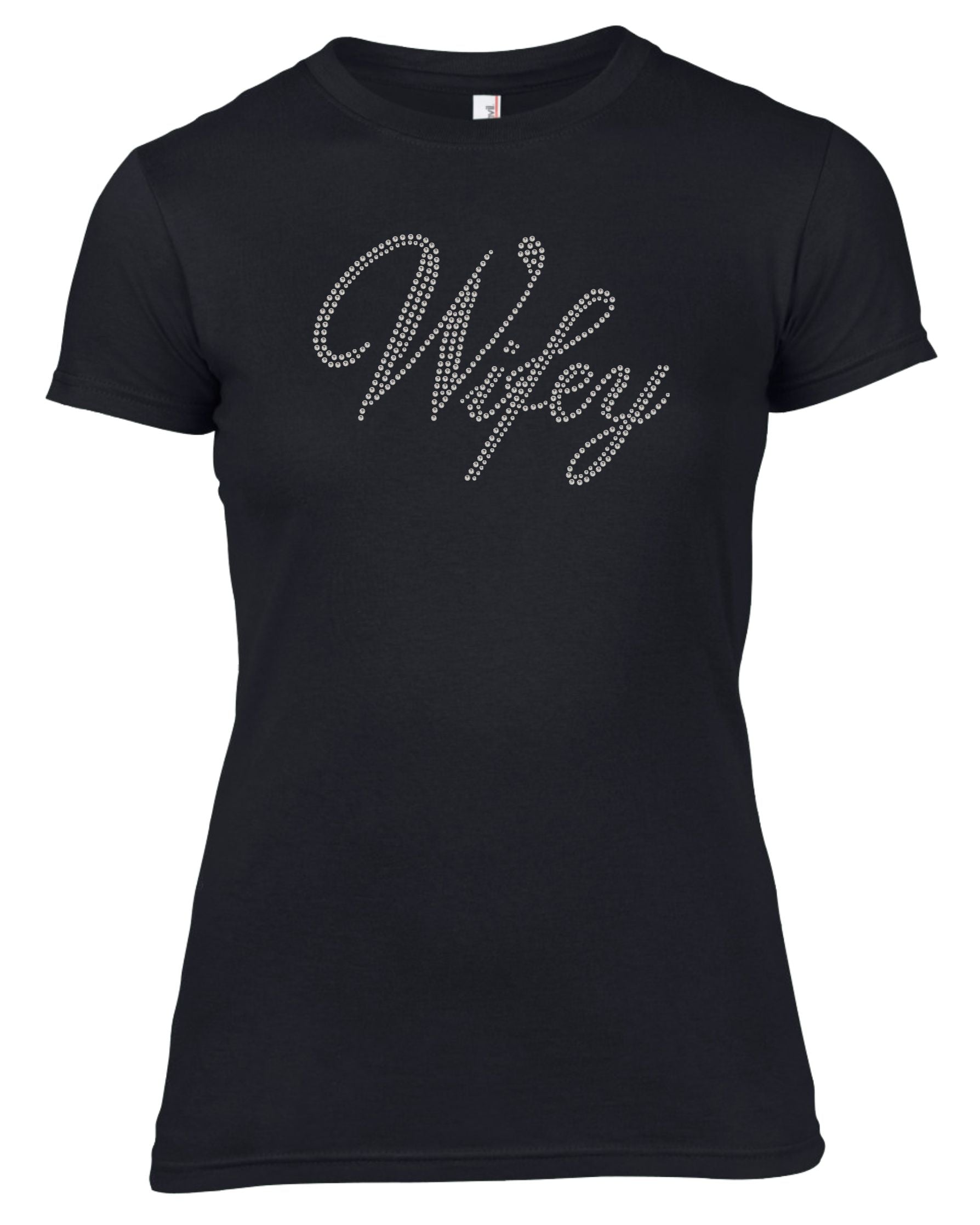 WIFEY RHINESTONE EMBELLISHED HEN STAG DO PARTY T-SHIRT FOR LADIES